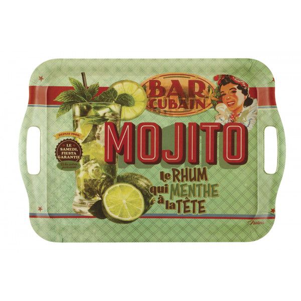 Petit plateau métal MOJITO Natives déco rétro vintage - Provence Arômes Tendance sud Plateau Métal Mojito 30 cm , Marque: Rétro Décoration Bar Rétro Grand Plateau Bambou Rectangle MOJITO Natives Déco Rétro Vintage Plateau Cafe Plateau de service rond en métal sur le thème du Mojito. Sa grande taille vous permettra de transporter facilement verres et bouteilles. Très pratique pour effectuer le service comme dans un bistrot Plateau métal rectangulaire vintage Mojito