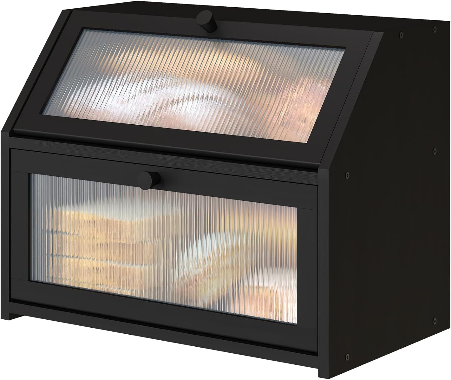 Conservation Pain Maison Boîte à Pain, Récipient à Pain De Grande Capacité, Boîte à Pain Pour Comptoir De Cuisine Recipient De Stockage De Pain En Metal Support A Pain Pour Organisateur De Rangement De Cuisine Rouge Boîte Pain élégante Noir Grande boîte à pain 2 niveaux pour comptoir de cuisine, boîte de Boîte De Rangement De Pain, Récipient À Pain En Plastique Pour Usage... Les compartiments spacieux, mesurant 34,3 cm de largeur et 34,3 cm de hauteur, peuvent accueillir tout, des pains artisanaux aux pâtisseries du matin. La porte transparente vous permet de surveiller votre inventaire de pain en un coup d'œil, tandis que le design astucieux des coins permet une excellente utilisation de l'espace de comptoir. L'étagère intérieure est parfaitement espacée pour stocker des pains plus grands sur le dessus et des articles plus courts en dessous, aidant à maintenir une fraîcheur et une organisation optimales dans votre cuisine. Le design à deux niveaux maximise l'efficacité du stockage, parfait pour garder divers produits de boulangerie frais et facilement accessibles. Aspect élégant : extérieur noir élégant avec étagères intérieures en bambou naturel pour créer une esthétique moderne qui complète tout décor de cuisine Rangement polyvalent : grande capacité pouvant accueillir différentes tailles de pain, des baguettes aux pains ronds, avec une surface supérieure pratique pour un rangement supplémentaire Caractéristiques pratiques : la porte à ouverture frontale offre un accès facile, tandis que le design compact des coins maximise l'utilisation de l'espace de la cuisine Cette boîte à pain rustique est parfaite pour optimiser les espaces de cuisine, offrant une solution pratique pour organiser les petites cuisines et améliorer leur agencement