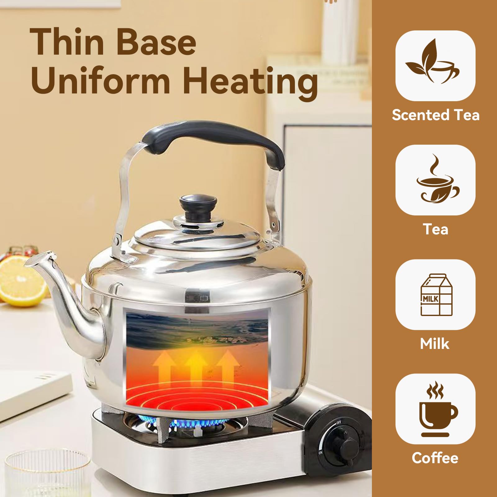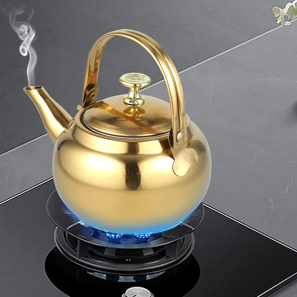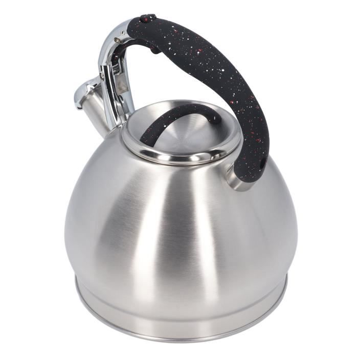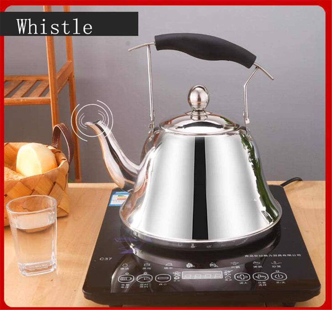 Théière Pour Cuisinière Bouilloire 5.5L Grande Capacité Bouilloire à Thé 5,5L En Acier Inoxydable - Pour Cuisinière Gaz Et Induction - Sifflement - Grande Capacité Bouilloire Poele A Bois Théière Cuisinière 5.5L Théière Acier Inox Cuisinière Bouilloire Sifflante Inox 5L - Pour Cuisinière Gaz Et Induction - Poignée Anti-chaleur - Design Classique Bouilloire Traditionnelle Sifflement Cette 3L tuyau théière est fait de durable en acier inoxydable. Il est léger, compact et facile à transporter et magasin lors de la marche, randonnée ou camping... Chauffe rapidement : belle base fine pour un chauffage efficace et uniforme. Faites bouillir efficacement l'eau pour votre thé vert, thé oolong, thé blanc, thé noir glacé, tisane, café français ou autre boisson de votre choix et elle satisfera vos envies. Bouilloire sur cuisinière : cette bouilloire à thé sifflante convient aux cuisinières à induction, aux cuisinières électriques, à gaz et à gaz. Assurez-vous que le niveau d'eau est inférieur à la ligne de flottaison maximale. Grande capacité : la grande capacité de 5,5 L est idéale pour servir toute la famille ou les fêtes, ce qui permet de gagner du temps lors du revidage. Idéal pour servir la famille et les amis ou pour préparer plusieurs tasses de café ou de thé. Prise en main confortable : de forme ergonomique et conçue pour maximiser votre confort de levage, de versement et de remplissage. La capacité de 5L (disponible aussi en 4L et 6L) est parfaite pour une famille ou pour préparer plusieurs tasses de thé. Le sifflet intégré t'avertit quand l...