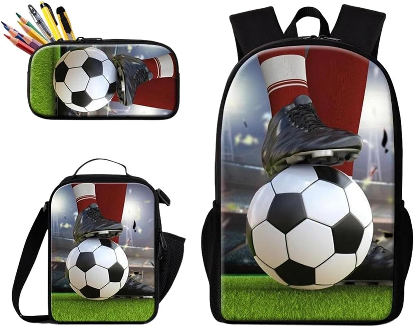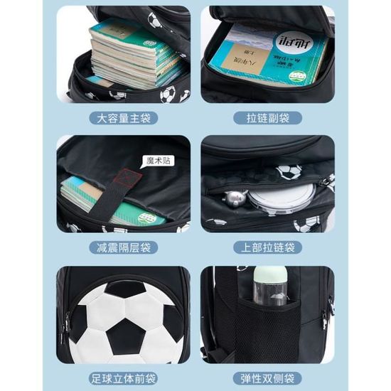 KDFSSIPE Sac d'école de Football, Sac De Transport Pour La taille du sac à livres est de 16 pouces et la taille de la trousse à crayons est de 22*5*11cm. Cartable Garcon Primaire Foot ScruffyTed Sac à Dos De Football Pour Garçons Et Filles - Grande Capacité - Sac à Dos De Voyage - Sac à Dos De Sport, Vert, Taille Unique Accessoire école Garçon Il y a 2 poches latérales en filet pour les bouteilles d'eau ou les parapluies. La taille est de 10,5 x 4,5 x 8 po. Convient pour transporter des boissons, des boîtes à lunch, des fruits, etc. La trousse est en tissu Oxford, qui est solide... Trousse à crayons,Trousse Scolaire Fermeture Éclair,Étui à crayons... Le motif football et les couleurs du sac reflètent votre style et vos besoins, ce qui en fait un cadeau créatif pour vous et vos amis. SANGLES D'ÉPAULES CONFORTABLES : Le sac à dos de football est équipé d'une poignée de transport supérieure, de bretelles réglables, de bretelles plus épaisses et plus larges, et d'un dos qui s'adapte aux courbes du corps pour une expérience confortable ! Il est fonctionnel et pratique et peut être utilisé comme cartable d'étudiant, sac à dos d'ordinateur portable, sac d'école et sac à dos décontracté. 2) Le sac d'école pour enfants est équipé de bretelles réglables, d'un dos plus épais et plus large et de deux poches latérales en filet, et le sac à crayons a une conception à double couche pour faciliter le tri et le stockage. SAC À DOS CRÉATIF : Ce sac à dos durable est parfait pour les hommes, les femmes, les adolescents ou les étudiants. Spécification : Taille : sac d'école : 16 pouces Sac à crayons : 22*5*11cm Matière : polyester Couleur : noir Produit inclus : 1pc*sac d'école 1pc*sac à crayons 1) Le cartable de football et la trousse à crayons sont fabriqués en fibre de polyester durable, le cartable mesure 16 pouces et la trousse à crayons 22*5*11cm, ce qui est à la fois pratique et portable.