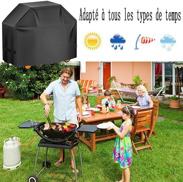 Protection imperméable : avec un revêtement inférieur plaqué argent et une couche imperméable, cette housse empêche efficacement l'infiltration d'eau, gardant votre poêle de barbecue sec et propre à tout moment. Housse Rangement Meuble Extérieur Housse De Barbecue Grande Couverture De Barbecue, Housse D'Isolation Taille 100x56x64 Cm Cordon Serrage Caractéristiques : * Construction ferme : fabriquée à partir de tissu Oxford 420D, cette housse de barbecue d'extérieur est conçue pour résister aux éléments, assurant une protection durable contre la pluie, la neige et la poussière. Description du produit 1. Résistant aux déchirures : la housse de barbecue est fabriquée en matériau hydrophobe et double bordure, améliorée avec une double couture sale pour fournir une couverture complète et éviter les fissures. La couche intérieure a un revêtement argenté, qui est résistant et offre une excellente protection contre la lumière du soleil. Protégez votre barbecue... Il suffit de l'essuyer ou de le rincer pour maintenir son aspect et sa fonctionnalité au fil du temps. Caractéristiques : * Nom du produit : housse de poêle pour barbecue extérieur 420D. Matériau résistant et imperméable : la housse de barbecue d'extérieur est fabriquée en tissu Oxford 420D et revêtement en PU. Il peut supporter une pression d... * Design coupe-vent : équipé d'un cordon de serrage réglable, cette housse peut être fermement serrée pour éviter qu'elle ne soit emportée par des vents forts, assurant que votre réchaud de barbecue reste protégé. * Performance imperméable : avec un revêtement inférieur plaqué argent avec une couche imperméable, cette housse offre une résistance exceptionnelle à l'infiltration d'eau, gardant votre poêle sec et propre. * Dimensions : 76 x 76 x 63 cm, 82 x 82 x 61 cm, 87 x 87 x 77 cm, 92 x 92 x 61 cm, 100 x 56 x 64 cm et 160 x 160 x 80 cm., Couleur : noir. Housse de barbecue, Housse de barbecue extérieure 100% imperméable *Taille polyvalente : la housse est disponible en plusieurs tailles, y compris 76 x 76 x 63 cm, 82 x 82 x 61 cm, 87 x 87 x 77 cm, 92 x 92 x 61 cm, 100 x 56 x 64 cm et 160 x 160 x 80 cm, ce qui la rend adaptée à divers meubles d'extérieur carrés, permettant un ajustement parfait. Nombre de pièces : 1., Contenu de l'emballage : 1 housse pour meubles.
