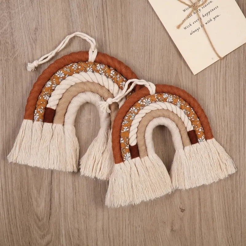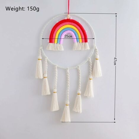Cadeaux de vacances : Cette décoration suspendue tissée à la main peut être utilisée comme cadeau pour les amis, la famille, les enfants, les camarades de classe, les amoureux, les parents, les enseignants ou les collègues à l'occasion de Noël, de Thanksgiving, de la fête des enseignants, de la fête des mères, des fêtes de famille, des célébrations, des cérémonies de remise des diplômes ou des anniversaires. Suspension Murale Glands Macramé Weldomcor Macramé Grande Tapisserie Tissée Tenture Murale Boho Feuille Plume Décoration Chic Pour Chambre Salon Décoration Boho Chambre Enfant Ornement suspendu : Cet ensemble d'ornements muraux est un design unique d'un arc-en-ciel et d'un ornement à glands en perles de bois. Décoration murale arc-en-ciel d'environ 35 x 24 cm. Magnifiques décorations faites à la main en perles de bois et corde de coton. Ces décorations à suspendre sont conçues avec des pompons de différentes couleurs, vives et lumineuses, faciles à attirer votre attention, peuvent égayer le salon et ajouter une sensation chaleureuse et... Il attire pleinement l'attention des gens. Il peut servir de décoration suspendue pour la chambre à coucher, la salle d'étude, la chambre d'enfant, le salon, le bureau, le dortoir et le café. Arc En Ciel Macrame Tenture Murale Tissée Arc-En-Ciel Décoration Murale En Macramé Arc-En-Ciel... Large utilisation : Cet arc-en-ciel tressé est léger et facile à transporter. Il peut aider à enrichir les effets décoratifs de différents espaces. Premium et durable : Ces ornements muraux en perles de bois sont doux et confortables, de couleur vive, durables et de première qualité, fabriqués solidement et ne se désagrègent pas facilement. Décoration Murale En Macramé Arc-en-ciel Pour Chambre D'enfant, Chambre De Bébé, Salle De Jeux Colorée, Petite Tapisserie Tressée Avec Pompons À la mode et créatif. Ils ne se décolorent pas facilement., Facile à entretenir.