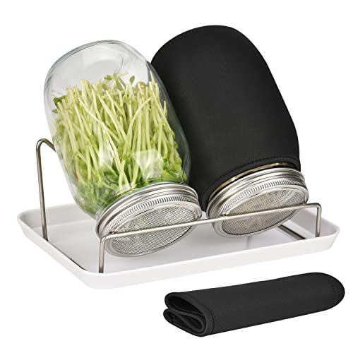 Kit De Germination Des Graines, 2 Grands Bocaux Mason à Large Ouverture Avec Couvercles De Germination, Manchons Occultants, Plateau De Drainage, Support En Acier Inoxydable, Kit De Culture Des Germes Kit Pret A Pousser Kit de pot de germination de qualité supérieure – Pot de Kit De Germination Parfait : Vous Recevrez 18 Pièces, Y Compris 4 Bocaux En Verre, 4 Couvercles De Germination En Acier Inoxydable 304... 1 pinceau de mise en conserve., 2 supports à ressort., 2 plateaux. Contenu de l'emballage : notre kit de culture de choux de brocoli simplifie le processus de germination à la maison, ce qui en fait une expérience agréable pour tout le monde. Le kit comprend tous les éléments essentiels : 2 bocaux Mason à large ouverture de 947,2 g, 2 manchons occultants, 2 couvercles de germination de qualité supérieure, 2 plateaux de germination pratiques, 2 supports robustes en acier inoxydable et 1 brosse de nettoyage (graines non fournies) 2 couvercles de germination en acier inoxydable 304., 2 manchons occultants. En outre, notre brosse de nettoyage facilite le lavage des bocaux Mason Contrôle amélioré de la lumière : avec 2 manchons occultants, vous pouvez manipuler l'exposition à la lumière de vos germes, réduisant considérablement le temps de germination et favorisant une croissance saine et plus longue. Une alimentation plus saine et facile : avec notre kit de germination de graines, cultiver un assortiment de légumes verts nutritifs et croquants dans votre cuisine n'a jamais été aussi facile Couvercles de rangement antfute en plastque à ouverture large Ball pour bocaux Mason, paq. 6...