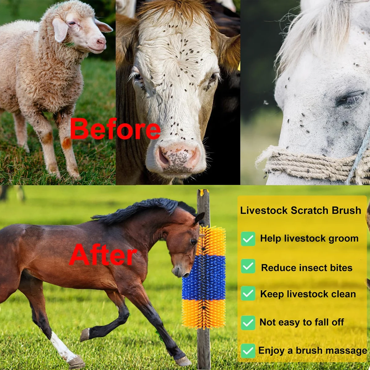 Il est adapté à la plupart des ranchs. Brosse Démangeaison Animaux Ferme Soin Animal Ferme Grattoir à Bétail Pour Vaches Et Chevaux - Brosse Massage Anti-Démangeaisons | Caoutchouc Durable 33.8cm Grattoir Cheval Brosse Grattoir Cheval Bétail Contenu de l'emballage : 1 brosse à gratter pour bétail. Brosse de démangeaison de cheval Brosse de démangeaison de cheval... Il n'est pas facile de tomber, de casser ou d'être endommagé, et peut être plié pour maintenir sa forme à volonté, avec une résistance et une flexibilité parfaites. Amélioration de la santé animale : les chevaux et les vaches se grattent naturellement contre les objets pour soulager les démangeaisons et favoriser une peau saine. Grattoir de délestage pour chevaux SALALIS en acier inoxydable avec... Soulage l'inconfort causé par la perte de pattes saisonnières et d'autres problèmes d'animaux, soulage les démangeaisons et favorise une peau saine. 1 jeu de vis de montage., Remarques : 1., La couleur de l'article peut varier de celle de la photo, en fonction des paramètres d'affichage et de luminosité de votre ordinateur., 2., Les mesures étant prises à la main, les tailles indiquées peuvent varier de 1 à 5 mm. Nos brosses à bétail éliminent non seulement efficacement la saleté, les peaux mortes et autres irritants pour garder votre animal propre et sain, mais elles offrent également une expérience de grattage confortable. Brosse à gratter pour bétail, poteau griffoir pour cheval, brosses pour Confort : cette brosse de massage pour bétail est conçue pour aider les animaux à « démangeaisons douloureuses ». Portée : cette brosse grattoir pour bétail mesure 45 cm de long, 20 cm de large et dispose de poils de 6,1 cm de long.