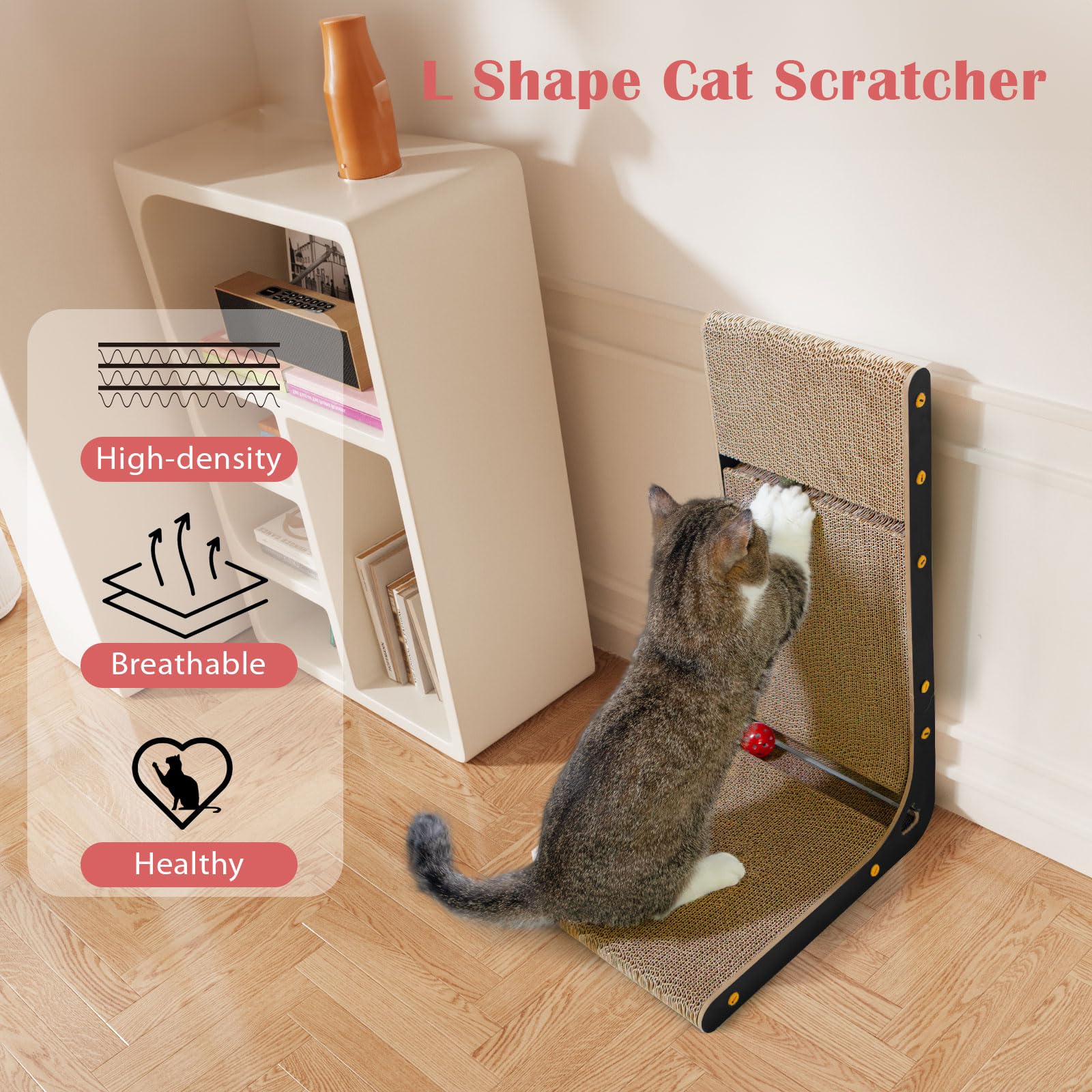 Matériau Durable Pour Griffes 2 En 1 Griffoir Magique Griffoir Magique Chat Carton Pour Chat Carton Griffoir 60 Cm Chat Griffoir Carton Carton Kraft Forme Souris à L'herbe à Chat, 36 X 20 X 12 Cm Zamibo Griffoir En Carton Pour Chat Avec Maison Pour Chat-Taille L-65 Cm-Avec... Le carton ondulé utilisé n'est pas seulement un matériau à gratter populaire pour les chats, mais aussi durable et stable. Le griffoir est une solution idéale pour protéger vos meubles tout en répondant aux besoins naturels de votre chat. La construction bien pensée offre à votre chat différentes possibilités de jouer, de se détendre et de faire ses griffes. La forme en L permet différentes positions de grattage et rend la planche particulièrement stable. Mode d'emploi 1 pièce Plaisir de jeu : le jouet de balle intégré offre un divertissement supplémentaire et favorise l'instinct de jeu de votre chat Matériau : le carton ondulé robuste offre une surface de grattage optimale et aide au comportement naturel de soin des griffes Design unique : Ce griffoir en forme de L permet un gain de place et offre un espace de repos à votre chat. Il se transforme en arbre à chat (position verticale), en couchage (position horizontale) ou en niche (pour les chats couchés). Un choix sûr : Fabriqué en carton ondulé, sans substances nocives. Parfaitement sain pour votre chat. 1