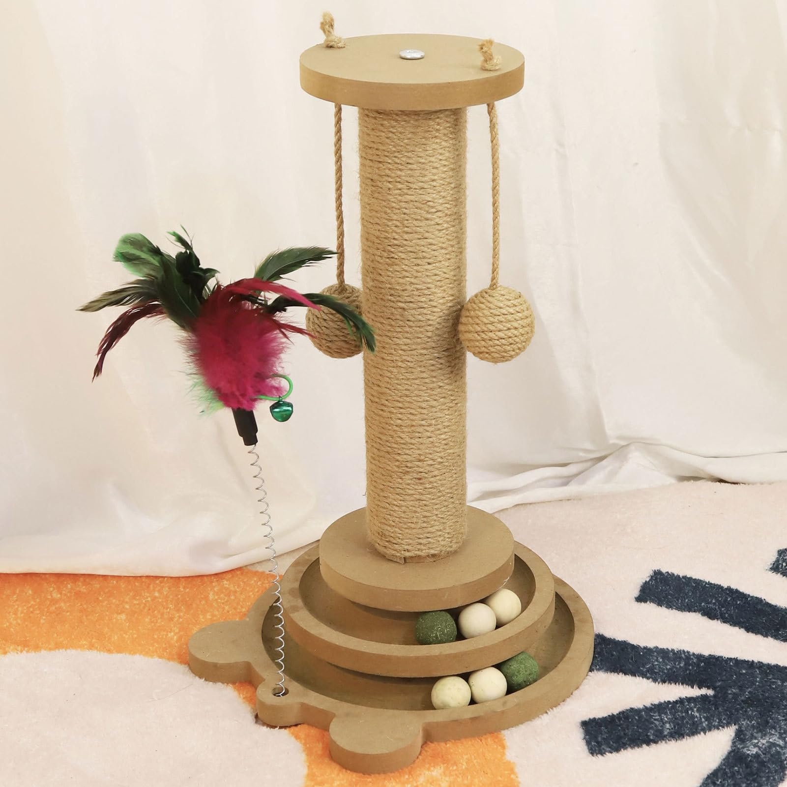 ESTINK jouet à gratter pour chat Poteau à Gratter pour Chat, Grand Arbres à chat avec tunnel et échelle crème 55,5 cm - Arbre À Chat... Griffoir Chat 4-en-1 Griffoir Pour Chat – Poteau à Chat 4 En 1 – Fournitures Multifonctions Pour Chaton Avec 2 Balles En Sisal Et Jouet à Billes Pour La Protection Des Meubles D'angle D'intérieur Griffoir En Bois 50 Cm Ou 40 Cm Description du produit Élégant et pratique, le griffoir pour chat 4-en-1 offre stabilité et une conception anti-basculement pour assurer la sécurité de votre animal. Que ce soit placé dans le salon, la chambre ou le bureau, il complète votre intérieur tout en répondant aux instincts naturels de votre animal. Griffoir,Poteau à gratter pour chat,carotte mignon,arbre à chat,jouet... Réalisé avec des matériaux résistants aux rayures, il aide à le stress chez les chats et chatons. Spécification:Matériel produit: bois, corde sisalePoids du produit:50 cm: 850g40 cm: 800gTaille du produit:50 cm: environ 50x37x10cm / 19., 69x14., 57x3,94 pouces40 cm: environ 40x37x10cm / 15., 75x14., 57x3,94 poucesListe des produits:1 * Cat Scratching Post (les teasers de chat sont expédiés en couleurs )Notes:En raison de différents paramètres d'éclairage et d'écran, la couleur du produit peut être légèrement différente de l'image. Structure Fiable : Base en bois massif une performance anti-bascule constante pour une utilisation sans inquiétude, protégeant efficacement l'animal Fonctionnalité 4-en-1 : Ce dispositif 4-en-1 favorise la détente du chat lors des séances de jeu, tout en répondant à ses besoins innés de faire ses griffes et de mordiller.
