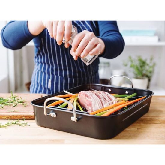 Plat à rôtir avec grille - 35x25 cm - Slip-Let *Matériau : acier inoxydable. Plaque Pour Cuisson Au Four Plaque à Patisserie Avec GrillePlaque à Biscuits En Acier Inox De Accessoire Pâtisserie Durable * Nettoyage et entretien faciles : conçus pour être antirouille, la poêle et le support peuvent être facilement nettoyés au lave-vaisselle, ou en les trempant dans de l'eau chaude savonneuse, un processus de nettoyage sans tracas après la cuisson. Idéale pour les biscuits, macarons, brownies ou même pour faire rôtir des légumes. Disponible en 3 tailles, celle de 31x24cm convient à la plupart des fours et... Artisanat exquis] – Plat de four classique et grille de refroidissement pour cuire et rôtir des cookies, des légumes et des gâteaux ; acier aluminisé de... Ensemble complet avec grille de refroidissement : la grille de refroidissement incluse s'adapte parfaitement à la poêle, parfaite pour la cuisson des cookies ou le refroidissement des gâteaux tout en étant également utilisable séparément pour plus de commodité. * Dimensions : 15 x 15 x 5 cm ; 20 x 20 x 5 cm ; 24 x 24 x 5 cm., Couleur : argenté. Dimensions pour divers plats : la poêle et l'étagère soigneusement dimensionnées peuvent accueillir diverses recettes sans occuper trop d'espace au four, parfait pour toute configuration de cuisine. * Design innovant avec grille de refroidissement : cet ensemble polyvalent comprend une poêle et une grille de refroidissement qui s'emboîtent parfaitement, vous permettant de cuire des biscuits, des légumes et des gâteaux sans effort tout en offrant la possibilité d'utiliser la grille de refroidissement séparément. Matériau en acier inoxydable : fabriquée en acier inoxydable robuste, cette plaque de cuisson est conçue pour la sécurité et la longévité, ce qui en fait un choix intelligent pour les tâches de cuisine quotidiennes. Caractéristiques : * Construction en acier inoxydable : fabriquée en acier inoxydable de haute qualité, cette poêle assure sécurité et durabilité, offrant une excellente alternative aux options traditionnelles en aluminium et anti-adhésives pour les tâches de cuisine quotidiennes.