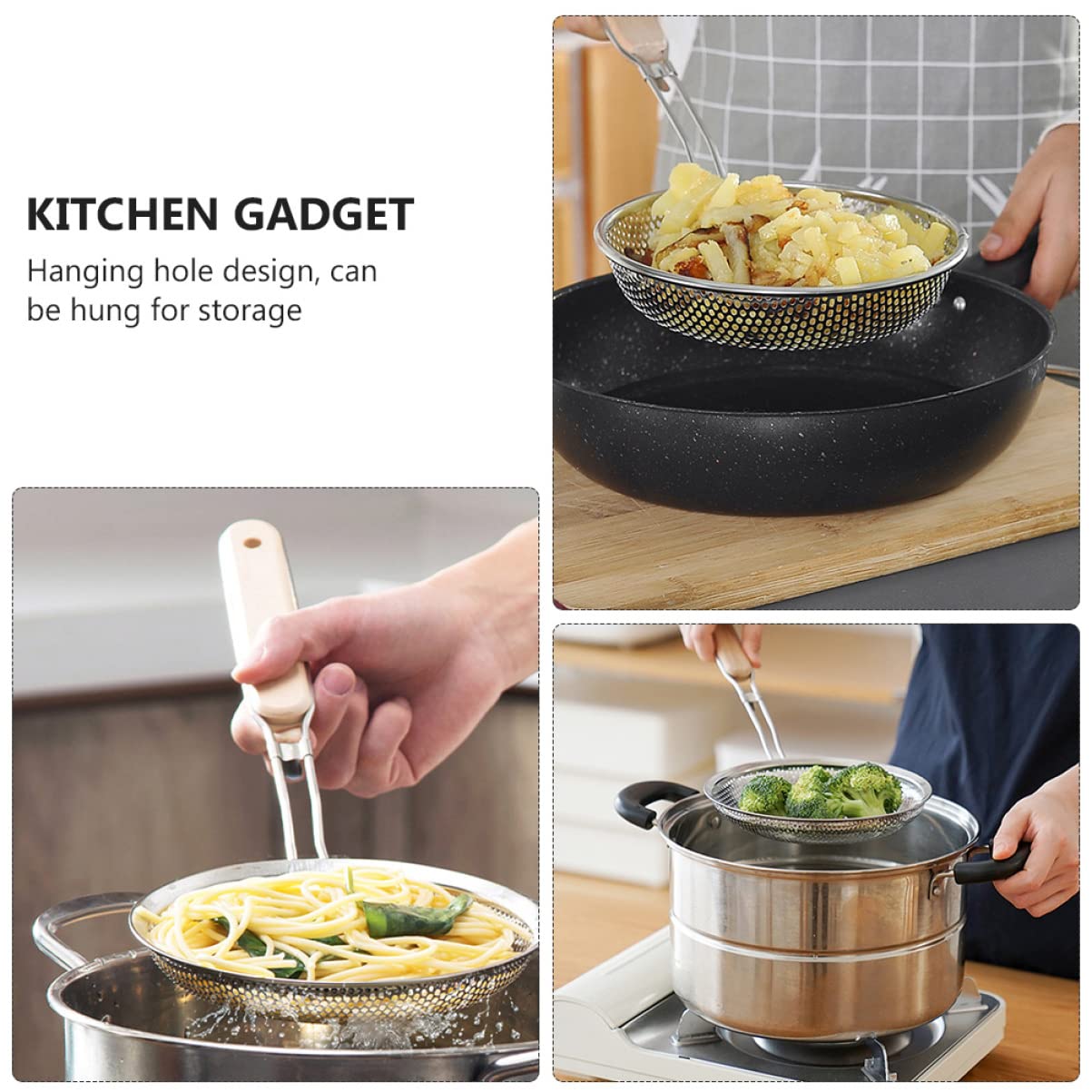Passoire Acier Inoxydable Cuillère à Passoire à Gros Trous Passoire De Cuisine Créative Longue Poignée En Acier Inoxydable écumoire Passoire à Pâtes Pour Ustensiles De Cuisine écumoire Cuisine Diamètre 10cm Passoire à légumes, pelles de cuisson, isolation t... – Grandado GAR® mini paniers à frire en métal doré pour servir l'outil de cuisson... Spécification: - matériel: acier inoxydable Tableau de taille: - Facultatif Le forfait Comprend: 1x crépine d'écumoire Note: Veuillez autoriser de légères erreurs dues à la mesure manuelle et aux différents moniteurs. 【Matériau robuste】 à fil est en acier inoxydable, résistant à la chaleur, antirouille, solide et robuste, garantissant une utilisation de longue durée. 【Fonctions multiples】 Cette passoire alimentaire au design unique la rend adaptée pour égoutter, frire, friteuse, pâtes, spaghettis, nouilles, poisson, légumes, viande, etc. - 【Fonctions multiples】 Cette passoire alimentaire au design unique la rend adaptée pour égoutter, frire, friteuse, pâtes, spaghettis, nouilles, poisson, légumes, viande, etc. 【Poignée ergonomique】 La poignée confortable et ergonomique des passoires pour cuisine offre une fermeté lors de l'utilisation de la cuillère, la rendant facile et sans effort à utiliser. 【Conception pratique】 Cette passoire à friture est un outil de cuisine essentiel qui vous aide à efficacement et facilement. Facile à nettoyer : la surface antiadhésive et les bords lisses de en acier inoxydable rendent cette passoire facile à nettoyer, ce qui vous permet d'économiser du temps et des efforts. Cuillère Passoire, Passoire En Maille avec Poignée, Résistante à La Chaleur, pour Faire Frire Des Frites, 22 cm · 17,5 cm. €12.99€12.99. In stock · 22 cm. €13.79...
