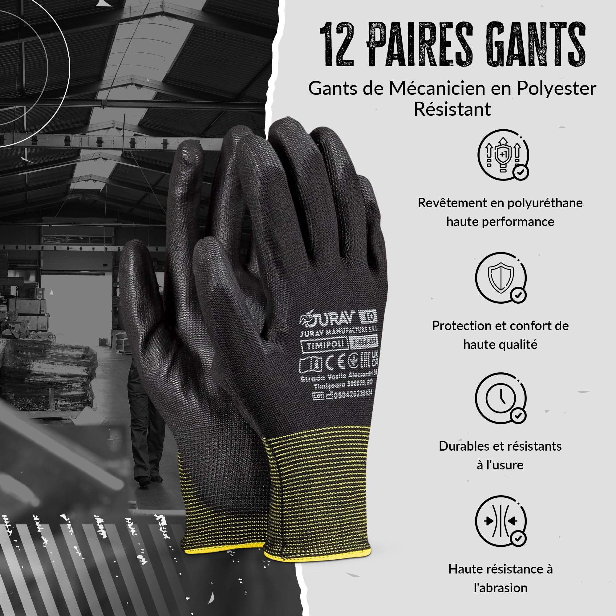 Gants de travail de sécurité - ZJCHAO - Noir - 10 Paires - Nylon... Power Grip antidérapant et SUPER FLEXIBLE ! Depuis le premier jour, notre marque fait notre travail pour assurer la sécurité du travail des clients. ⚡【Confort de port élevé】 Les gants de travail de protection en PU noir, légers et flexibles, offrent un super confort et une sensibilité, absorbent la transpiration pour vous garder les mains au frais. Les revêtements en polyuréthane sont compatibles avec les huiles légères et offriront une bonne adhérence et une excellente résistance à l'abrasion lorsque vous travaillez dans des conditions légèrement glissantes et humides. La coque en polyester tricoté sans couture offre un confort, une dextérité des doigts et une respirabilité accrus Les gants de travail de protection PU font preuve d'une très bonne élasticité et s'adaptent parfaitement à la paume pour assurer une grande dextérité. Meilleures safeyear 12 paires de - Janvier 2026 Ultra- la conception mince et économique offre une respirabilité. APPLICATIONS Maintenance générale/montage Gants Antidérapants Noirs SAFEYEAR 12 Pares De Guantes De Trabajo Recubiertos De PU Negros Para Trabajos Generales De Jardineria Gants Travail PU Antidérapants La doublure sans couture et le spandex assurent un confort maximal et une fatigue minimale de la main. Expédition/Réception/Entreposage Le poignet en tricot aide à empêcher la saleté et les débris de pénétrer dans le gant Gants de manutention EN388 enduits PU - carton de 100 paires - Corderie... La conception ultra-mince offre une respirabilité absolue et des performances hydrofuges À propos de Safeyear La marque Safeyear est spécialisée dans la conception et la production de gants de travail de sécurité et de chaussures de travail de sécurité. ⚡【Lavable et réutilisable】 Les 12 paires de gants de travail enduits de PU sont lavables et réutilisables, faciles à nettoyer, peuvent être lavées à la main ou à la machine, SAFEYEAR a de nombreuses années d'expérience dans la production de gants de travail, sait fabriquer des gants de travail en PU de haute qualité. ⚡【【Matériau et certification】 Avec un noyau de gant en PU trempé et 13 broches en polyester noir, les gants de travail noirs enduits de PU (EN388) offrent une meilleure adhérence et une meilleure ventilation dans des conditions sèches, humides ou légèrement huileuses pour la sécurité, offrant une forte résistance au frottement et larme. Amélioration de l'habitat, bricolage ⚡【Gants MULTI-USAGES】 Idéal pour les travaux de manutention générale où la précision est requise, y compris la mécanique automobile, le jardinage, l'ingénierie de précision, le bricolage, les ouvriers du bâtiment, l'entrepôt, la construction, le nettoyage, le déménagement, la livraison, le câblage, l'assemblage général, ce qui nécessite une adhérence supplémentaire.