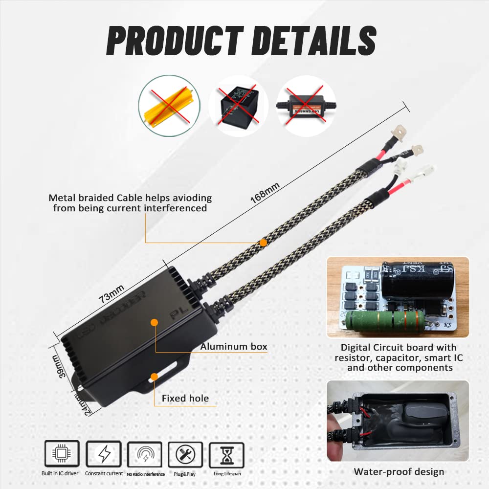 La conception robuste garantit des performances durables tandis que la taille compacte permet Akozon Décodeur sans erreur 2 pièces H7 LED anti-brouillard décodeur... Solution de qualité professionnelle: conçu pour la fiabilité et les performances de cet ensemble de décodeur LED H1 représente la solution idéale pour les réparations et l'entretien des améliorations de véhicules. [Technologie anti-flicker] éprouve un éclairage cohérent stable avec notre technologie avancée anti-flicker qui élimine les fluctuations d'éclairage ennuyeuses. Décodeur Led H1 Canbus Décodeur De Phare LED, 2PCS H8 H9 H11 LED Décodeur Canbus 12V Décodeur Anti-scintillement Sans Erreur Pour Phare Antibrouillard LED Anti Scintillement Phare La conception de circuits avancés garantit une intégration transparente avec le système Canbus de votre véhicule empêchant les codes d'erreur ennuyeux tout en conservant des performances de lumière optimales. [Solution de qualité professionnelle] conçues pour la fiabilité et les performances de cet ensemble de décodeur LED H1 représente la solution idéale pour les mises à niveau des véhicules et la maintenance. Performances sans erreur: ce décodeur de phares LED H1 élimine efficacement les problèmes de conversion LED courants, notamment les avertissements de défaillance des ampoules hyper clignotant et les indications de bulbe brûlées. Compatibilité universelle: spécialement conçue pour les phares à LED H1 et les feux de brouillard Cet adaptateur de décodeur fonctionne avec la plupart des modèles de véhicules qui nécessitent une intégration Canbus. Il résout le problème de tirage à faible courant lors de la mise à niveau des ampoules halogènes aux ampoules LED, que vos nouvelles lumières LED fonctionnent correctement sans déclencher des feux d'avertissement de tableau de bord. Il résout le problème de tirage à faible courant lors de la mise à niveau de l'halogène aux ampoules LED, garantissant que vos nouvelles lumières LED fonctionnent correctement sans déclencher des feux d'avertissement de tableau de bord. [Construction durable premium] Construite pour durer notre décodeur de haute qualité et des matériaux en nylon qui ont des températures extrêmes et des conditions difficiles. Cuque décodeur de lumière LED 2 pièces C19H7 LED ampoules résistance... [Compatibilité universelle] spécialement conçue pour les phares à LED H1 et les feux de brouillard Cet adaptateur de décodeur fonctionne avec la plupart des modèles de véhicules qui nécessitent une intégration Canbus. Construction durable de qualité supérieure: Construit pour durer notre décodeur comprend des matériaux en PVC et en nylon de haute qualité qui résistent à des températures extrêmes et des conditions difficiles. Décodeur Erreur Tableau Bord Décodeur Canbus D-Lumina H15 - Anti-Scintillement Phares LED - Harnais Résistance - 1 Paire Décodeur Canbus H15