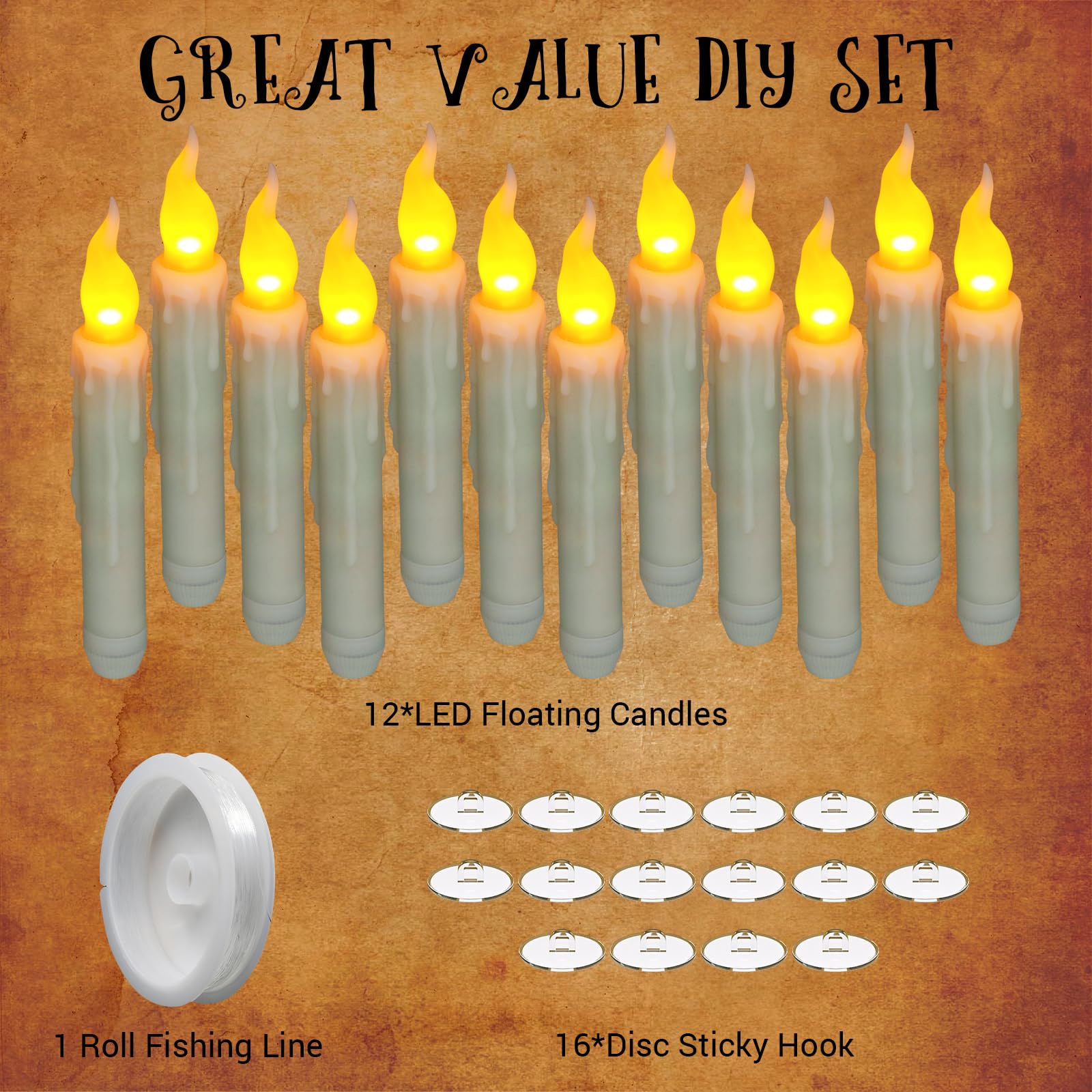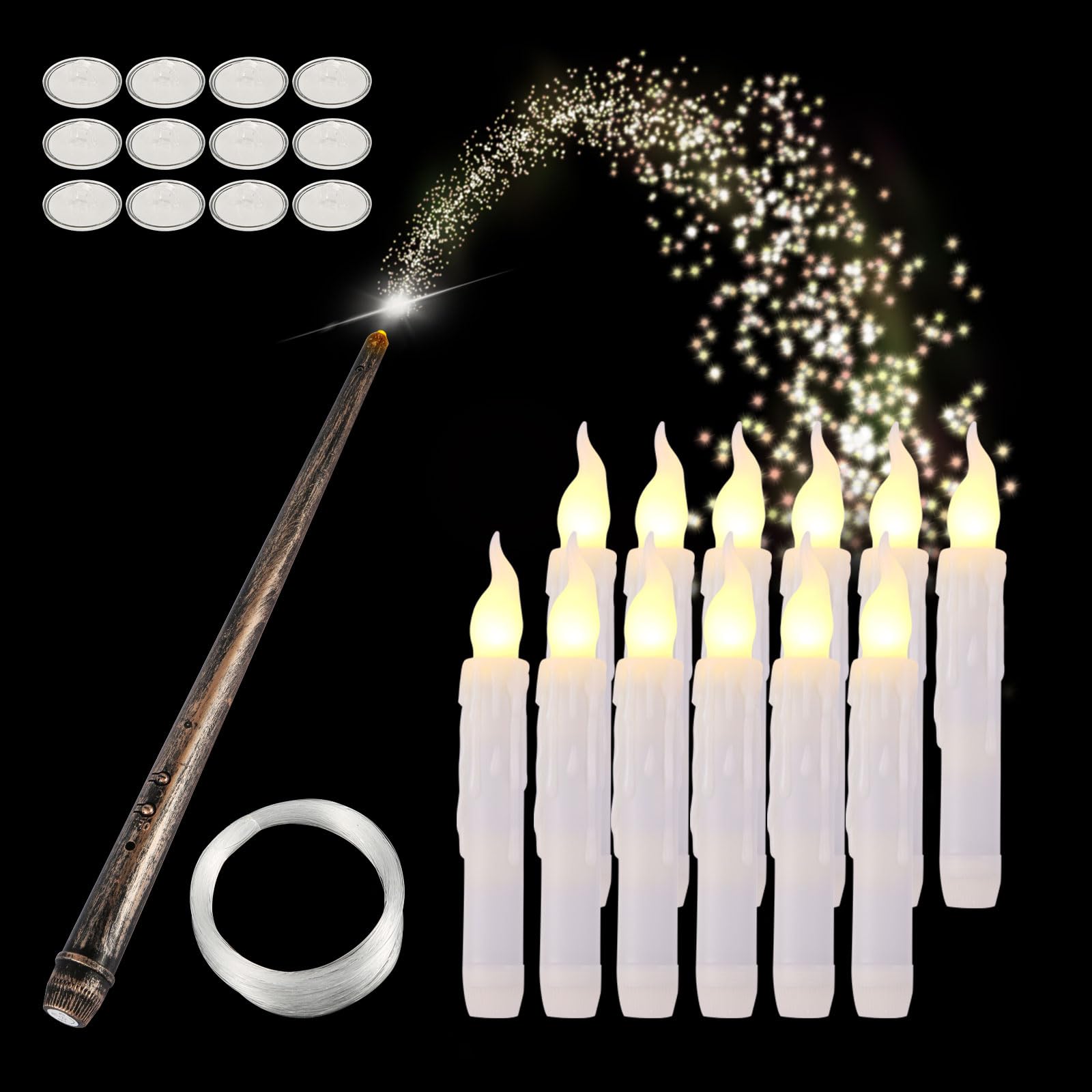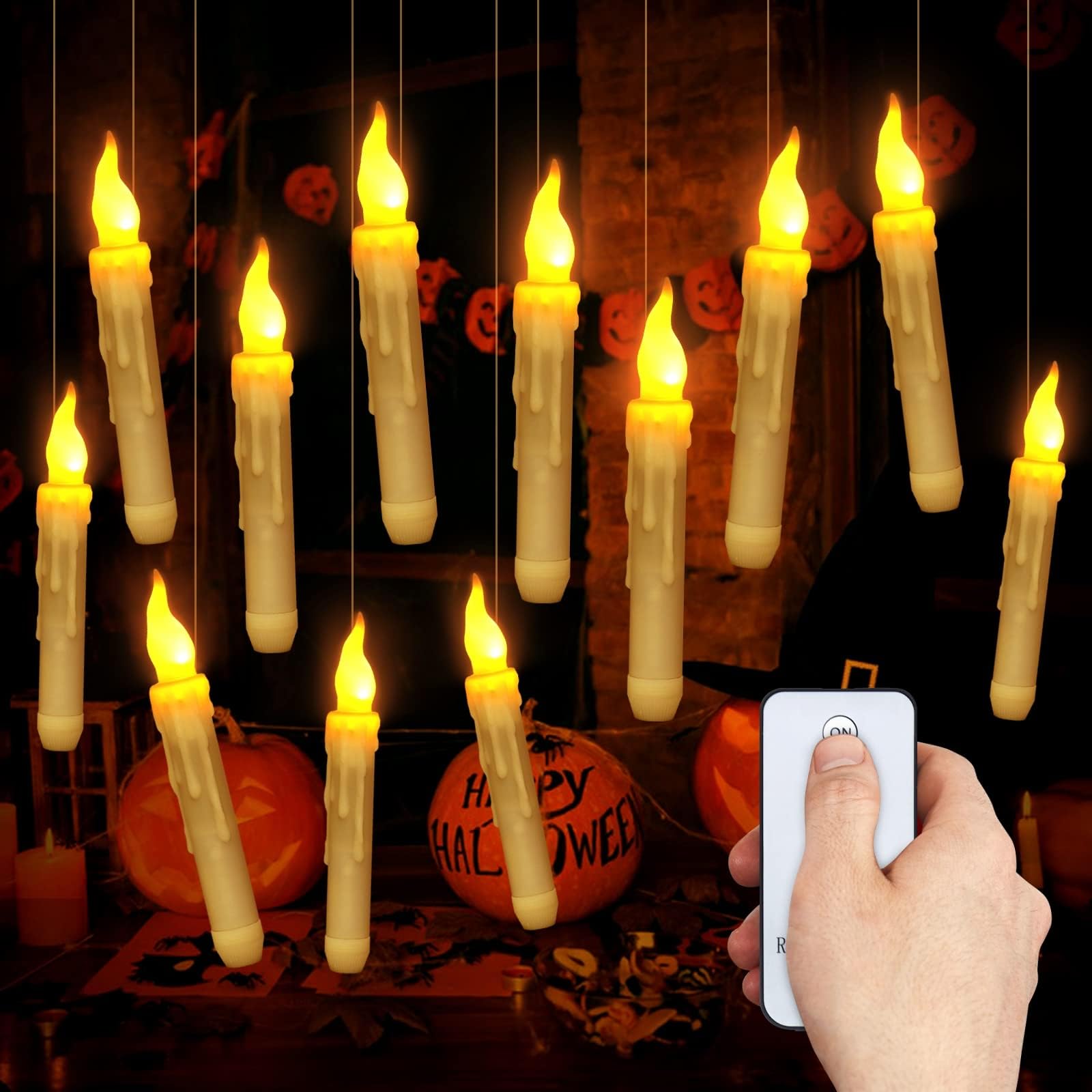 12PCS HALLOWEEN Bougies flottantes avec télécommande Bougies magiques Harry Potter flottantes à LED avec baguette • Enfant World Fête Halloween Maison 12PCS HALLOWEEN Bougies Flottantes Avec Télécommande Bougies Sans Décoration Halloween Sans Flamme Télécommande En raison de la différence entre les moniteurs, il peut y avoir une légère différence de couleur. Facile à utiliser: attachez simplement les crochets et les bougies avec le fil inclus, puis accrochez-les au plafond, aux fenêtres, aux branches ou à d'autres endroits que vous aimez. Bougies à LED Flottantes,Magiques,12PCS ,Télécommande Baguette , Décoration Intérieure , Sans... Contenu de l'emballage: vous recevrez 12 morceaux de bougies flottantes LED d'Halloween, 1 baguette magique, 12 crochets et 1 rouleau de fil. Funny Magic Wand: Vous pouvez agiter la baguette pour allumer la bougie comme un sorcier. Application large: ces bougies flottantes d'Halloween sont des décorations d'Halloween idéales et une décoration de maison régulière ou des cadeaux parfaits pour vos amis, familles, voisins et collègues, créant une atmosphère de festival forte pour votre maison. Ces bougies flottantes vous feront vous sentir entrer dans la salle de l'école magique.