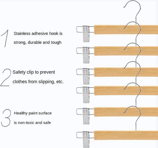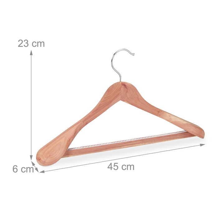 SONGMICS Cintres de Costumes, Lot de 6, Cintres profilés en Bois massif Crochet rotatif à 360° : équipé d'un crochet en acier inoxydable lisse et rotatif à 360°, il est facile à accrocher et permet de voir rapidement tous les cintres de votre garde-robe pour plus de confort au quotidien Cintres En Bois Large épaule HOUSEDAY Lot De 6 Cintres En Bois, Avec Large épaule, Crochet Cintres Pour Costumes Manteaux Bois de qualité supérieure (poli et laqué pour une surface sans éclats) - 44,6 cm de large x 25 cm de haut par crochet Il dispose d'épaules extra larges incurvées vers l'intérieur qui répartissent uniformément le poids des vêtements. HOUSEDAY Lot de 6 cintres en bois, avec large épaule, crochet rotatif à 360°, antidérapants, avec barre ronde, pour costumes, chemises, manteaux, vestes... Cintre en bois - Largeur des épaules : la taille du cintre est de 44,6 x 25 x 5,5 cm. Cette amélioration ergonomique préserve la forme du col et la chute des costumes, manteaux et chemises, tout en gardant les vêtements sur mesure dans leur forme d'origine. Polyvalent : polyvalent pour différents vêtements : convient à une variété de vêtements, y compris les costumes, les manteaux, les vestes, les chemises et les pantalons. Surface antidérapante : équipé d'un manchon en caoutchouc rainuré et antidérapant sur la barre du pantalon.