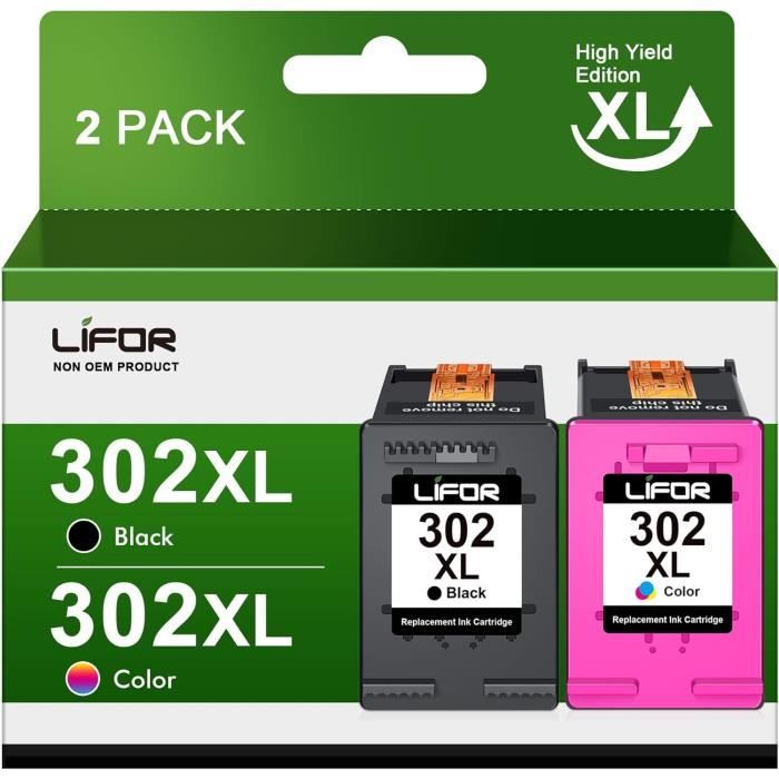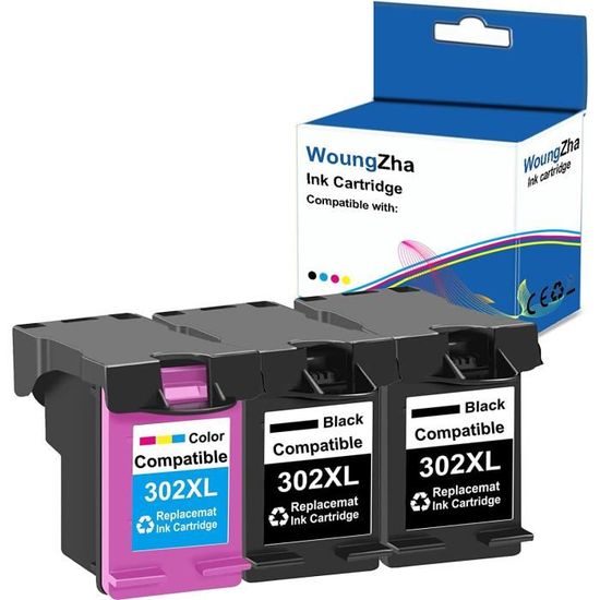 302XL Cartouche d'encre Noire, 302XL Cartouches d'encre Replaceent de Cartouche Noir Et Couleur Lot Encre Hp 302 Foiset Cartouches D'encre De Remplacement Pour HP302 302 XL (2 Noir) Pour Deskjet 3630 2130 3630 3634 Envy 4520 4521 4524 4527 Officejet 3831 3830 3833 3835 4650 5232 Cartouche Hp Cartouches Haute Capacité Pack 2 Cartouches HP-302 XL recyclée HP F6U68AE / F6U67AE 302XL Compatible pour OfficeJet 3830 3831 3832 3833 3834 3835 4650 4652 4654 4655 4658 5220 5230 5232 5252 5255 5258 5264, DeskJet 1110 1111 1112 2130 2131 2132 2133 2134 2136 2138 3630 3632 3633 3634 3636 3637 3638 3639, Envy 4520 4521 4522 4523 4524 4525 4526 4527 4528 4510 4511 4512 4513 4516 4517 302XL Cartouche d'encre Noire, 302XL Cartouches d'encre Replaceent de... Veuillez noter que l’emballage peut varier légèrement Rendement Élevét:480 pages par cartouche 302 XL noir, 330 pages par cartouche 302 XL couleur (avec une couverture de 5 % du format A4)