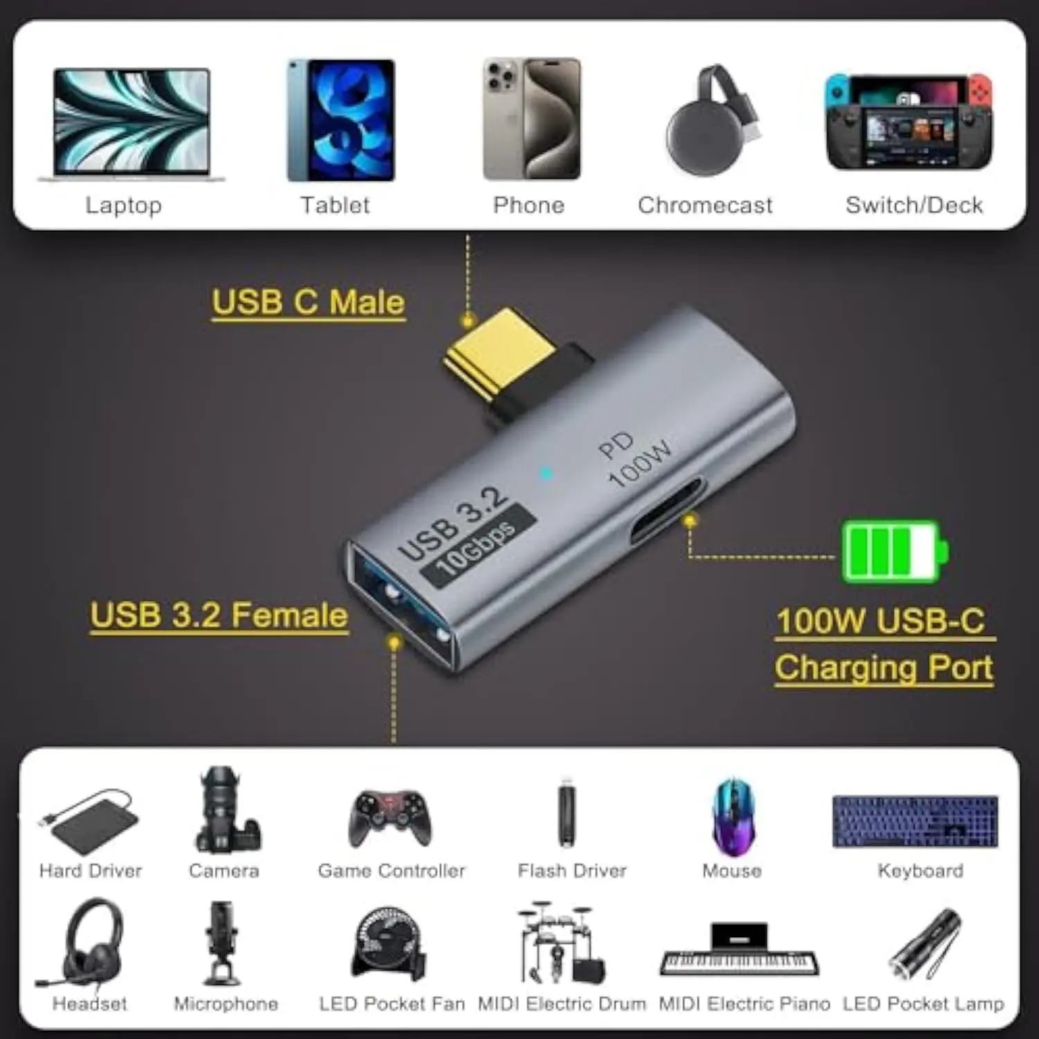 Adaptateur USB-C 2-en-1 HTGuoji Bloc D'alimentation 2 En 1 USB C Vers USB3.2 Et Type Ordinateur Tablette 2 En 1 8 en 1 - USB Type C HUB À 2 HDMI Double Moniteur avec Gigabit RJ45 HUB Large compatibilité : compatible avec une variété d'appareils USB-C, y compris les ordinateurs portables, tablettes, smartphones et plus encore, assure une utilisation polyvalente. Transfert de données haute vitesse : le port USB 3., 2 Gen 2 permet des vitesses de transfert de données ultra-rapides allant jusqu'à 10 Gbps, parfait pour le transfert rapide de fichiers volumineux. CARTE D'EXTENSION USB 3.2 et Type C PCI-E ContrôLeur PCIE Vers USB 6... Charge rapide : le port USB-C PD de 100 W prend en charge la charge rapide des ordinateurs portables, tablettes et smartphones compatibles, ce qui vous permet de charger rapidement vos appareils. Le port USB-C vers USB 3., 2 permet un accès facile à la mémoire externe, aux caméras et plus encore, tandis que le port PD 100 W charge rapidement les appareils compatibles. Connectivité polyvalente : cet adaptateur 2 en 1 combine un port USB 3., 2 Gen 2 (10 Gbps) OTG femelle et un port de charge USB-C Power Delivery (PD) de 100 W. Étendez votre connectivité avec cet adaptateur USB C polyvalent 2 en 1., Avec un port USB 3., 2 OTG pour un transfert de données fluide jusqu'à 10 Gbps et un port de charge Power Delivery de 100 W, cet adaptateur compact étend les fonctionnalités de votre ordinateur portable, tablette ou téléphone.