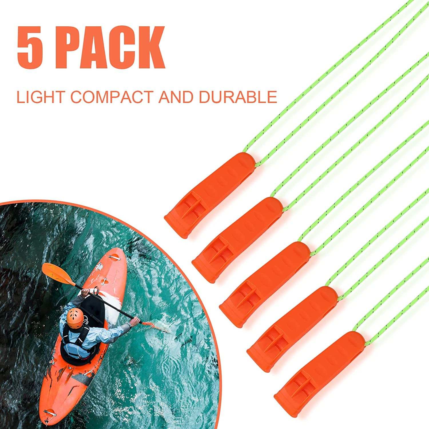 Abaodam Lot de 5 sifflets de survie d'urgence avec lanière verte - En Spécifications du Produit : Matériau : plastique ABS Couleur : noir, vert, orange, kaki Dimensions : 7 x 2 x 1,5 cm/2,75 x 0,78 x 0,6 pouces Poids : 10 g Le Forfait Comprend : Paquet de 5 sifflets de sécurité Sifflet Sécurité Plein Air HUACA Lot De 2 Sifflets D'urgence, Sifflet De Survie En Plein Air Porte Clef Alarme Anti Agression Peut être utilisé pour le sauvetage en plein air, le dressage d'animaux de compagnie, diverses compétitions sportives, etc. Le sifflet de survie est un accessoire indispensable pour toute activité de plein air ou de sport en nature. Compact et léger, il se glisse facilement dans une poche ou s'accroche à un sac à dos. En cas d'urgence, sa sonorité puissante permet d'alerter les secours ou ses compagnons de randonnée Sifflet Enfant Mignon | Sifflet en Plastique Amusant | Sifflet avec... Polyvalence : le sifflet d'urgence est portable et prêt à l'emploi. Emballage Du Produit : notre paquet contient 5 sifflets d'urgence avec bande réfléchissante, ils sont indispensables dans toute trousse de premiers secours et sont suffisants pour une utilisation et un remplacement quotidiens. Le sifflet de survie en plastique avec cordon réglable convient aux activités telles que la voile, la randonnée, le canotage, le kayak, le camping et la chasse où un avertissement ou un appel à l'aide est nécessaire pour assurer la sécurité. Extrêmement légers et faciles à transporter, ces sifflets d'urgence en plastique sont prêts à être utilisés immédiatement et sont livrés avec un cordon qui s'attache facilement à un sac à dos, un porte-clés ou une lanière pour le transport. Caractéristiques Principales : notre sifflet de survie d'urgence en plein air émet une tonalité aiguë qui produit facilement un son fort et aigu qui peut être entendu à distance. Caractéristiques : Ces sifflets de survie de sécurité sont conçus pour produire un son clair et fort qui peut être entendu même à distance, ce qui les rend idéaux pour le sport, l'entraînement, le camping, la randonnée et d'autres activités.