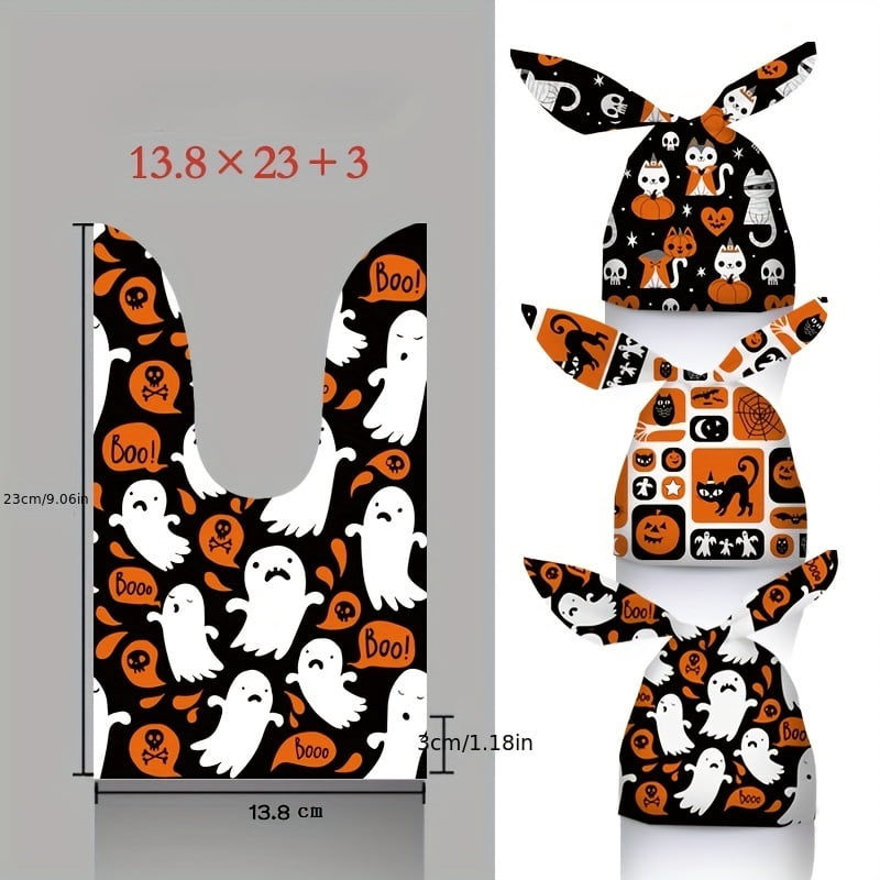 Sachet Pour Bonbon Halloween Sachet Bonbon Halloween, 50 Pièces Sac Halloween, Sacs Cadeaux Oreilles Sacs Bonbons Halloween Oreilles Lapin 60 Pcs Sacs à Bonbons de Noël Sachets Bonbon Sac Biscuit Cadeaux Découvrez notre vaste gamme de 50 pièces Sacs à bonbons d'Halloween, sacs cadeaux en plastique avec oreilles de lapin mignons pour biscuits d'Halloween, sacs à bonbons, sacs de iandises ou de fête, décorations de fête d'Halloween citrouilles, sacs cadeaux avec oreilles de lapins de dessin animé mignons et citrouilles cool, sacs d'emballage de faveurs de fête surprises chez SHEIN... Ces sacs de friandises d'Halloween ont d'innombrables utilisations pour la saison des fêtes d'Halloween. Le forfait comprend : 50 sachets de bonbons d'Halloween. 🎃【Peut être réutilisé】Ces sacs de bonbons d'Halloween sont fabriqués à partir de matériaux de haute qualité, solides et durables, difficiles à déchirer et peuvent être réutilisés. Fourni en quantité suffisante, c'est un choix idéal pour les fêtes d'Halloween des enfants, préparer des cadeaux pour les invités, mettre des bonbons, des chocolats, des collations et passer un Halloween inoubliable ! 🎃【Design mignon】 Des sacs-cadeaux plats portables, faciles à attacher des bonbons, des biscuits, des collations, du pop-corn et d'autres collations, peuvent également être utilisés comme sacs de rangement, sacs à bijoux et sacs à vêtements. Vous pouvez stocker de petits objets d'Halloween et les envoyer en cadeau aux enfants, aux amoureux et aux amis. 🎃【Large application】 Vous pouvez bricoler ces sacs de fête d'Halloween à volonté, qui peuvent être utilisés pour stocker des bonbons, des biscuits, des collations, des noix, des cadeaux, etc. Sacs à friandises d'Halloween : Vous recevrez 50 sacs à friandises d'Halloween, 4 motifs différents et 50 attaches torsadées dorées. Différents styles et grandes quantités, parfaits pour de nombreuses fêtes d'Halloween, anniversaires et rassemblements.Taille idéale : Les sacs en cellophane d'Halloween mesurent environ 27,5 cm x 12,5 cm, ce qui est pratique pour y glisser des bonbons...