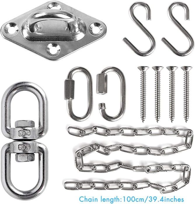 Ressort Porche 200kg BESPORTBLE Kit Pivotant Pour Hamac Chaise Suspendue Crochet De Plafond Chaîne De Balançoire De Porche Cintres Chaise Balancoire Portable et polyvalent : la construction légère permet un transport facile, idéal pour changer d'emplacement ou pour les aventures en plein air, kit de suspension de chaise, ressort de chaise pour balançoires de porche Ressort de hamac en 2 pièces, ressort de tension en acier galvanisé Crochet robuste - 【3】ressort pour le montage de chaises hamac et d'autres accessoires suspendus comme des sacs de boxe, des plantes suspendues, CHOYCLIT Accessoires pour fauteuil suspendu,Ressort de hamac - En acier... Crochet de plafond - peut vous permettre de faire pivoter la chaise sans emmêler les cordes Crochets pour panier suspendu en plein air - performance de charge : deux ressorts de balanoire de porche peuvent supporter 200 kg, l'excellente capacit de charge aide votre balanoire s'accrocher fermement au support, amliorant le confort de la balanoire, c'est une suspension multifonctionnelle parfaite., accessoire. Crochets pour panier suspendu en plein air - performance de charge : deux ressorts de balançoire de porche peuvent supporter 200 kg, l'excellente capacité de charge aide votre balançoire à s'accrocher fermement au support, améliorant le confort de la balançoire, c'est une suspension multifonctionnelle parfaite., accessoire. Chaise d'extrieur - performance de charge : ce ressort de chaise suspendue peut supporter jusqu' 200 kg (environ 440 lb), l'excellente capacit de charge peut vous aider accrocher la balanoire de manire stable sur le support.