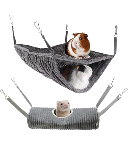 Matériau doux : le hamac pour cochon d'Inde est fabriqué en peluche douce, agréable au toucher, robuste et résistant aux morsures, et peut être utilisé pendant une longue période. 4 hamacs pour petits animaux de compagnie. Accessoire Cage Petit Animal Doux DONGKER Hamac De Cochon D'Inde,Lit De Hamac De Hamster De Rat De Furet Suspendu A Double Couche Pour Animal De Compagnie Cochon D'Inde Chinchilla Perroquet Hamacs Petits Animaux Lot 4 Clairlio Hamacs pour petits animaux Lit chaud pour furet en peluche... Mode d'emploi Retirez les crochets métalliques avant de laver le hamac La sangle renforcée et les crochets métalliques robustes assurent une suspension sûre et garantissent la sécurité de votre animal de compagnie pendant la détente et le jeu. Dimensions : Cachette pour cochon d'Inde cube : 28 x 28 cm Hamac furet double couche : 34 x 26 cm. Remarque : veuillez retirer les 4 crochets métalliques avant de laver le hamac C'est un bon choix pour la plupart des petits animaux de compagnie tels que les cochons d'Inde, les chinchillas, les écureuils, les hamsters, les furets, les campagnes, les rats, les souris, les lapins, les perroquets, etc Cachette cube pour cochon d'Inde avec rembourrage en éponge amovible pour une meilleure prise en main ; le tapis peut être facilement retiré pour le nettoyage. Les sangles robustes, les crochets en métal et les coutures renforcées assurent la stabilité du hamac et offrent à votre animal un endroit sûr et chaud pour se reposer Il suffit d'ajuster l'angle ou de nouer les sangles pour créer l'endroit parfait pour que votre animal de compagnie puisse jouer et se reposer. Vous pouvez laver à la main ou dans la machine à laver. Convient à plus d'animaux de compagnie, tels que : furets, rats, rat fantaisie, hamsters, cochons d'Inde... Dimensions : cachette cubique pour cochon d'Inde (28 x 28 cm) ; hamac double (34 x 26 cm) ; tunnel pour animaux de compagnie (19 x 34 x 13 cm) ; couverture pour animaux de compagnie (34 x 34 cm) Facile à nettoyer : les accessoires de suspension pour animaux de compagnie sont lavables à la main et lavables en machine, libèrent les mains et offrent un environnement confortable pour les animaux de compagnie. Ce hamac pour furet dispose de 4 crochets métalliques qui peuvent être facilement adaptés à différentes tailles et configurations de cages. MoonSing Hamac Lit pour Chat avec Sangles Réglables et