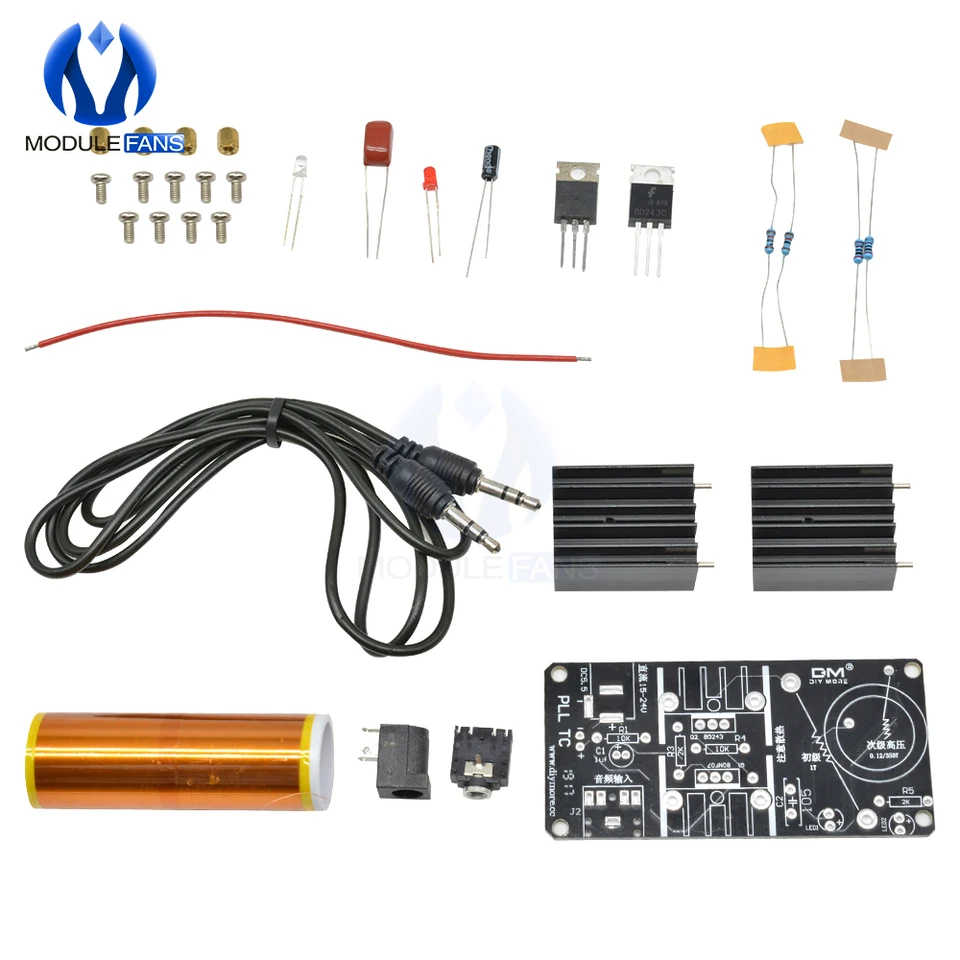 Kit Pour Effets Lumineux YOSOO Kit De Bobine De Haut-parleur Plasma Mini Ensemble De Modules De Bobine De Musique Bobine Tesla Musique rendszer tömlő Keksz diy mini tesla coil kit instructions erotikus tea kémény Membrane haut-parleur 25 cm pour bobine 35,5 mm suspension mousse... Le kit comprend également une fonction de lecture de musique : le nouveau concept haut-parleur utilise les vibrations d'air générées par l'arc pour jouer de la musique via la prise jack 3,5 mm. Des compétences de soudure sont nécessaires pour cela. Tous les composants nécessaires du circuit imprimé sont inclus dans le kit. Item Specifications Taille (planche):4 x 7,6 cm Puissance:15 W Tension d'entrée:DC 15-24 V, courant 2 A, interface DC5,5/embase à broches Entrée audio:Jack 3,5 mm Package 4x résistances annulaires colorées 10K 4x résistances annulaires colorées 2K 4x LED 3mm 2x bobines primaires 2x bobine secondaire 2x condensateur électrolytique 2x condensateur monolithique 2x transistor 2x tube à effet de champ 2x prise DC 2x prise audio 8x piliers en cuivre 12x vis 4x dissipateur thermique 2x manuel d’instructions Ce produit n'utilise pas de courants élevés. Vous ne serez pas électrocuté si vous le touchez, mais il y a un risque de brûlure si vous touchez l'arc En outre, le dissipateur thermique chauffe également après avoir été allumé pendant une longue période. Dans ce cas, nous vous recommandons d'utiliser un petit ventilateur. KIT ÉLECTRONIQUE HAUT-PARLEUR plasma bobine à faire soi-même...
