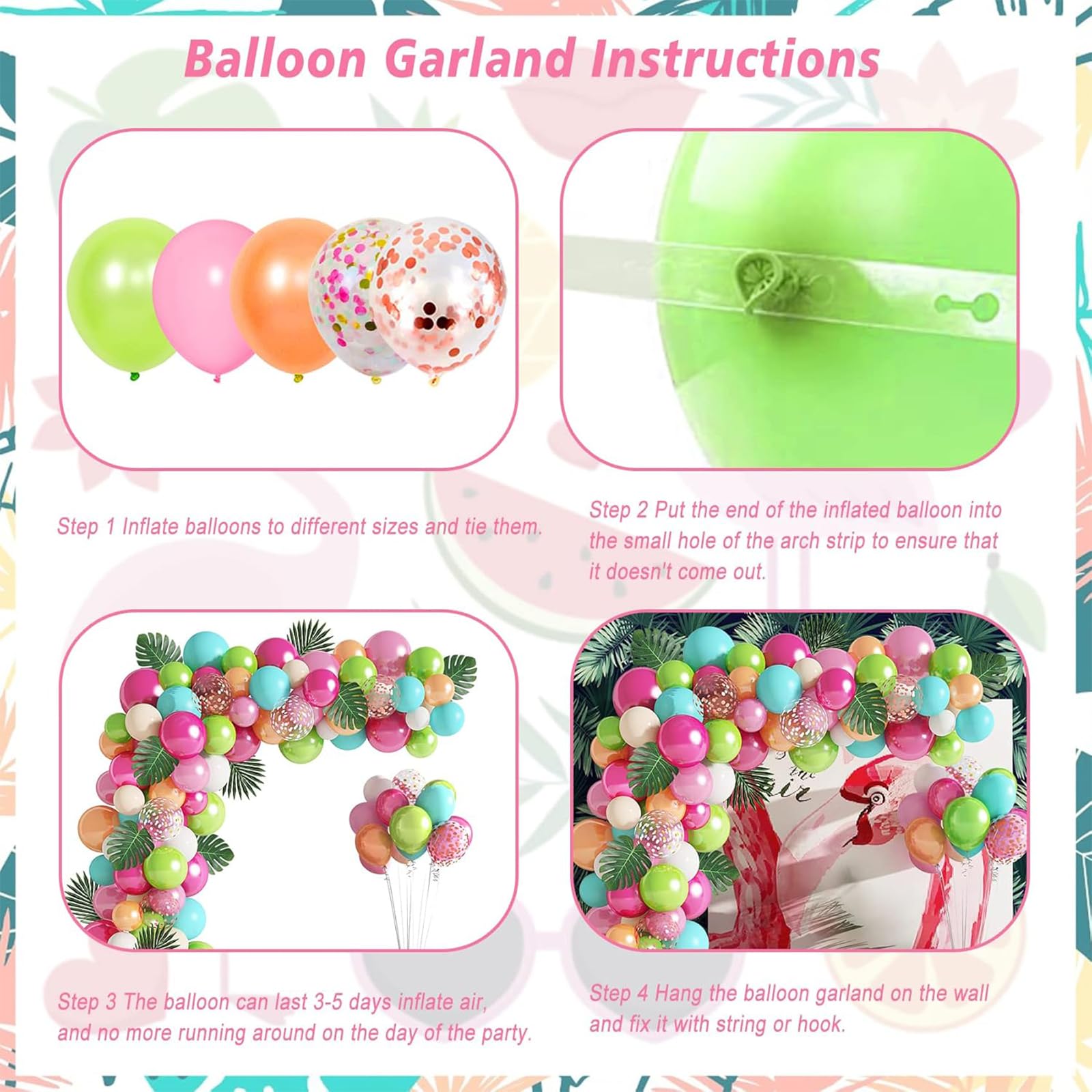Arche Ballon, Ballons Anniversaire, Arche Ballon Anniversaire, Feuilles Tropicales Decoration Kit, Guirlande De Ballons Tropicaux, Pour La DéCoration De FêTe, ThèMe Tropical, FêTe De Plage Kit Arche Ballon, Kit Arche Guirlande Ballons Noir Or Avec Ballons... Kit Ballon Arche Set De Décoration De Fête Hawaii, Guirlande De Ballon Hawaïenne, s Tropical Avec Ballons Latex Feuilles De Palmier, Pour Anniversaire Mariage Safari Fête Tropicale D'Été Kit Arche Ballon Description du produit Set de Décoration de Fête Hawaii, Guirlande de Ballon Hawaïenne, Kit Arche Ballons Tropical avec Ballons Latex Feuilles de Palmier, pour Anniversaire Mariage Safari Fête Tropicale d'Été Avertissement De Sûreté Non Prêt à l’emploi pour une fête hawaïenne pleine d’ambiance. Kit complet pour fêtes tropicales : Kit de décoration de 39 pièces : 35 ballons en latex (10 vert clair, 10 roses, 5 rose doré, 5 rose rouge, 5 confettis) 4... Kit complet pour fêtes tropicales : Kit de décoration de 39 pièces : 35 ballons en latex (10 vert clair, 10 roses, 5 rose doré, 5 rose rouge, 5 confettis) + 4 feuilles de palmier en soie + rubans. Feuilles de palmier en soie résistante aux intempéries, à la texture réaliste. Décoration instantanée : Gonflable à l’air ou à l’hélium (pas besoin de pompe). Design coloré avec effets spéciaux : Couleurs tropicales éclatantes + ballons à confettis exclusifs : Frottez délicatement avant de gonfler pour que les paillettes adhèrent grâce à l’électricité statique, créant ainsi des effets lumineux magiques !