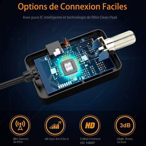 De préférence dans la même ligne de vue que la tour de signalisation. Si votre téléviseur n'en possède pas, vous aurez besoin d'un tuner externe ou d'un convertisseur/décodeur pour recevoir les chaînes. Vous pourrez parfaitement le cacher derrière votre téléviseur ou dans une fenêtre. S'il y a des obstacles plus importants, la plage d'acceptation sera plus petite. AXFEE Set di 8 distributori per antenne 1 distributore adattatore a T 🗼【RÉCEPTION DU SIGNAL STABLE】 L'antenne TV peut recevoir des signaux TV à environ 250 miles de distance, ce qui la rend idéale pour un placement à l'intérieur. Vous bénéficierez d'un accès à vie aux chaînes 4K et 1080p, notamment BBC, ITV, NBC, TVGuide, Fox et plus encore. Antenne TV Intérieur TNT HD, 420KM Antenne HDTV numérique Longue portée,Amplificateur de Signal Chaînes locales gratuites 4K 1080P ... -25€ dès... 🎵【FACILE À INSTALLER】Aucun assemblage requis, connectez-vous simplement au téléviseur via STB ou directement. AXFEE Antenne TV, Antenne TV Numérique Intérieure Profitez de nombreuses chaînes gratuites -----Matériaux de haute qualité, utilisation efficace----- -----Design ultra fin, parfaitement caché----- -----Installation en un clic pour profiter des chaînes gratuites----- spécification Matériel: Cuivre pur Taille: 25 cm * 22 cm Longueur du câble : 3,7 M Liste d'emballage : 1 * récepteur 1 * amplificateur de signal Adaptateur 1 * F vers CEI 1 * feuille de ruban adhésif 1 * manuel d'instructions Avis: 1., Pour éviter les interférences, veuillez vous éloigner de tout appareil à forte consommation d'énergie., 2., La distance de réception est affectée par la distance de la tour de signalisation, veuillez vous référer à la distance réelle., 3., Le mauvais temps peut affecter le signal 4., Veuillez ne pas l'utiliser à des températures extrêmes (température normale -20 ℃-85 ℃) Nous avons un service après-vente professionnel, si vous avez des questions sur nos produits, n'hésitez pas à communiquer et nous résoudrons le problème pour vous dans les plus brefs délais. La fine épaisseur de 0,2 pouce réduit la perte de signal de 50 % et la couche de blindage évite efficacement les interférences électromagnétiques et radiofréquences. Antenne TV Numérique Avec Amplificateur Signal Antenne Tv Intérieur Tnt Hd Puissante, Antenne Tv Intérieure Avec Amplificateur, 420Km Réception Smart Tv Profitez de toutes les émissions de télévision Full HD 1080P/4K Crystal HD gratuites avec votre famille! Il a un design compact, a un aimant puissant pour le maintenir en place et est livré avec un câble coaxial de 5 m, ce qui permet de le placer facilement sans prendre beaucoup de place Il est également livré avec un amplificateur de signal, qui peut amplifier le signal d'origine immédiatement après la réception du signal.