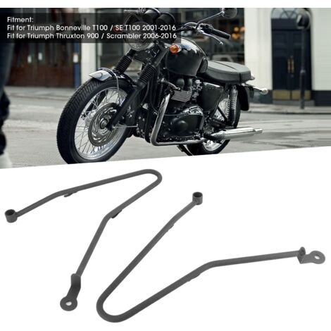 Les instructions ne sont pas incluses mais l'installation est simple Support Sacoche T100 T120 2016-2022 Supports De Sacoches Hepco-Becker Pour TRIUMPH BONNEVILLE Accessoire Moto Triumph T100 Caractéristiques : Installation à droite, universelle. Caractéristiques : 1., Utilisé pour maintenir le sac de selle sur le côté et laisser de la place pour le mouvement de la fourche arrière... Placement sur véhicule : côté droit. Compatibilité : Pour Triumph Bonneville T100 2016-2022., Pour Triumph Bonneville T120 2016-2022., Pour Triumph Thruxton 1200 2016-2022., Pour Triumph Street Twin 900 2016-2022., Pour Triumph Street Cup 900 2016-2022., Pour Triumph Speed Twin 1200 2019-2022., Pour Triumph Street Scrambler 900 2017-2022., Contenu de l'emballage : 1 support de montage pour sacoche. Support de sacoche de selle Barres de Support de Sac de Selle Support... Les instructions ne sont pas incluses mais l'installation est simple. Livré avec boulons et rondelles. Remarque : Veuillez vérifier ce produit et la taille convient à votre moto ou non. Kit Supports de Sacoches Noir Touring 2004/2008 pas cher - BTC Beau design, ajustement parfait pour votre vélo. Compatibilité : Triumph Bonneville T100/T120 2016-2022 > Triumph Thruxton 1200 2016-2022 > Triumph Street Twin 900 2016-2022/Cup 900 2016-2022/Speed Twin 1200 2019., -2022 /Scrambler 900 2017-2022
