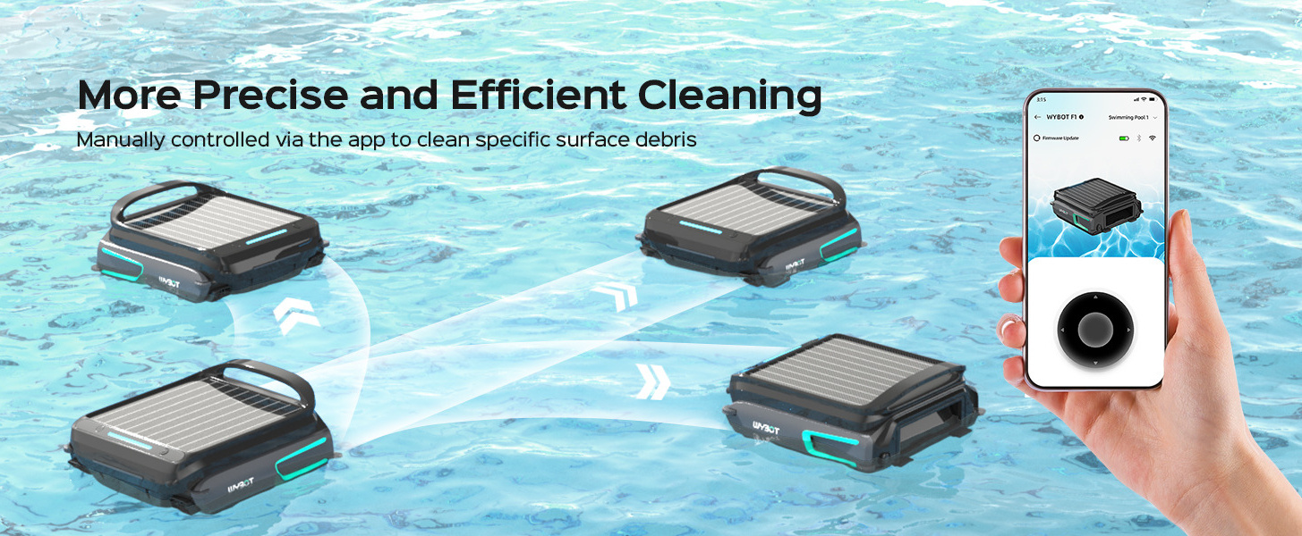 Aspirateur Solaire Application WYBOT F1 – Robot écumoire De Piscine à énergie Solaire Avec 8 Heures De Nettoyage Continu, Contrôle Par Application, Anti-enchevêtrement, Anti-fuite, Grand Panier De 7 L (noir Et Vert Nettoyeur Piscine Autonome Application Robot piscine sans fil Wybot C1 Pro | Nettoyage intelligent Avantages clés Nettoyage automatique et intelligent : détecte et élimine la saleté de surface pour une eau toujours propre. Alimentation 100% solaire : fonctionnement écologique, sans câble ni consommation électrique externe. Contrôle via application mobile : surveillez la batterie et pilotez le robot à distance en temps réel. Ultra-silencieux : nettoyage discret, parfait pour les... Il propose deux modes de nettoyage pour s’adapter à vos besoins, de jour comme de nuit. Idéal pour les piscines familiales, publiques ou d’hôtel, il assure un entretien écologique et économique Son système de double passage garantit qu’aucun débris ne reste coincé, assurant une propreté parfaite même dans les zones les plus complexes, pour une expérience de baignade toujours agréable Son contrôle via application mobile permet de personnaliser les cycles de nettoyage selon la taille et la forme de votre piscine, garantissant une eau propre et saine à tout moment Conception Fiable Anti-Enchevêtrement:Avec une structure anti-reflux et un design évitant l’enchevêtrement, ce robot de piscine offre une grande fiabilité même en cas d’utilisation intensive. Grande Capacité de Filtration:Équipé d’un panier de 7L et d’un filtre de 180μm, cet aspirateur piscine sans fil permet de retenir une grande quantité de débris et de particules fines. Cela réduit la fréquence des nettoyages manuels et optimise la qualité de l’eau. Le Robot Wybot S1 est conçu pour des piscines jusqu'à 110 m² ... Wybot F1 : Le skimmer flottant connecté à énergie solaire. Produit à...