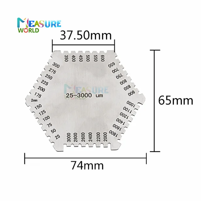 Jauge Pour Film Humide Peigne à Film Humide Hexagonal En Acier Inoxydable De Haute Précision Jauge Peigne Pour Film Humide Avec son design hexagonal pour une prise en main facile et un étui de protection noir pour la portabilité, cette jauge d'épaisseur est à la fois pratique et pour les mesures. Peigne Film Humide Peigne Hexagonal En Acier Inoxydable Pour Film Humide Jauge D Jauge Précision Hexagonale Idéal pour les peintres professionnels, les amateurs et les professionnels de l'industrie nécessitant un contrôle précis de l'épaisseur du revêtement, assurant un résultat d'application constant Pour une utilisation dans la peinture, la construction de revêtements et les réglages de laboratoire, cet outil garantit une épaisseur uniforme de couche, améliorant la durabilité et la durabilité de vos projets. Matériau premium]: Cette jauge d'épaisseur de film humide hexagonale moulée avec précision est en acier inoxydable, durable et réutilisable, et est disponible dans une gamme d'épaisseurs allant jusqu'à 3000 um.[Haute précision]: La jauge d'épaisseur de film humide l'intervalle est soigneusement divisé, la précision de mesure est élevée et la mesure en microns est précise... Garantit des applications de revêtement précises avec notre peigne à film humide en acier inoxydable, pour mesurer des épaisseurs de 25 à 3000 um... Remarque : Les mesures étant prises à la main, les tailles indiquées peuvent varier de 1 à 2 cm. Caractéristiques : Composant : acier inoxydable. Pour une utilisation dans la peinture, la construction de revêtements et les réglages de laboratoire, cet outil garantit une épaisseur uniforme de couche, améliorant la durabilité et la durabilité de vos projets. Fabriqué en acier inoxydable, ce peigne à film humide offre une excellente résistance à la rouille et dispose de divisions d'intervalles détaillées pour une grande précision de mesure. Dimensions approximatives : 65 x 41 mm. Outil de mesure de précision pour peinture - Jauges d'épaisseur hexagonales en acier inoxydable - Peigne à film humide - Mesure de 25 à 3000 um Caractéristiques : Garantit des applications de revêtement précises avec notre peigne à film humide en acier inoxydable, pour mesurer des épaisseurs de 25 à 3000 um, ce qui en fait un outil essentiel pour une application précise de la peinture.