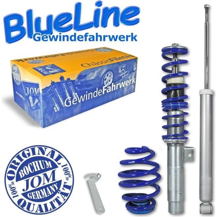 Kit Combiné Fileté Blueline approprié pour Opel Corsa A 10.82-3.93 / B... Charge maximale supportée par les essieux: Essieu avant 1105 Kg / Arriére 1250 Kg Ressorts enroulés à froid - Revêtement par poudre EPS - Amortisseurs galvanisés Amortisseurs Filetés Tuning JOM Car Parts & Car Hifi GmbH 741106 Suspension Combiné Fileté Blueline Réglables Kit Tuning JOM BlueLine Volkswagen Eos Sans Quattro, Tuning Kit Complet - Qualité Allemande Kit Complet de 4 amortisseurs avec ressorts. Le kit comprend aussi une clé de réglage pour la hauteur. Modifiez selon vos envies la hauteur de caisse de votre véhicule grâce à ces suspensions combinés filetés Convient pour Compatible av., Eos 1., 6 /2., 0/ 2., 0T/ DSG/ 1., 9TDi Ø 50/55 mm!, ! Kit Combiné Fileté Blueline approprié pour Seat Ibiza III (6L) 2002