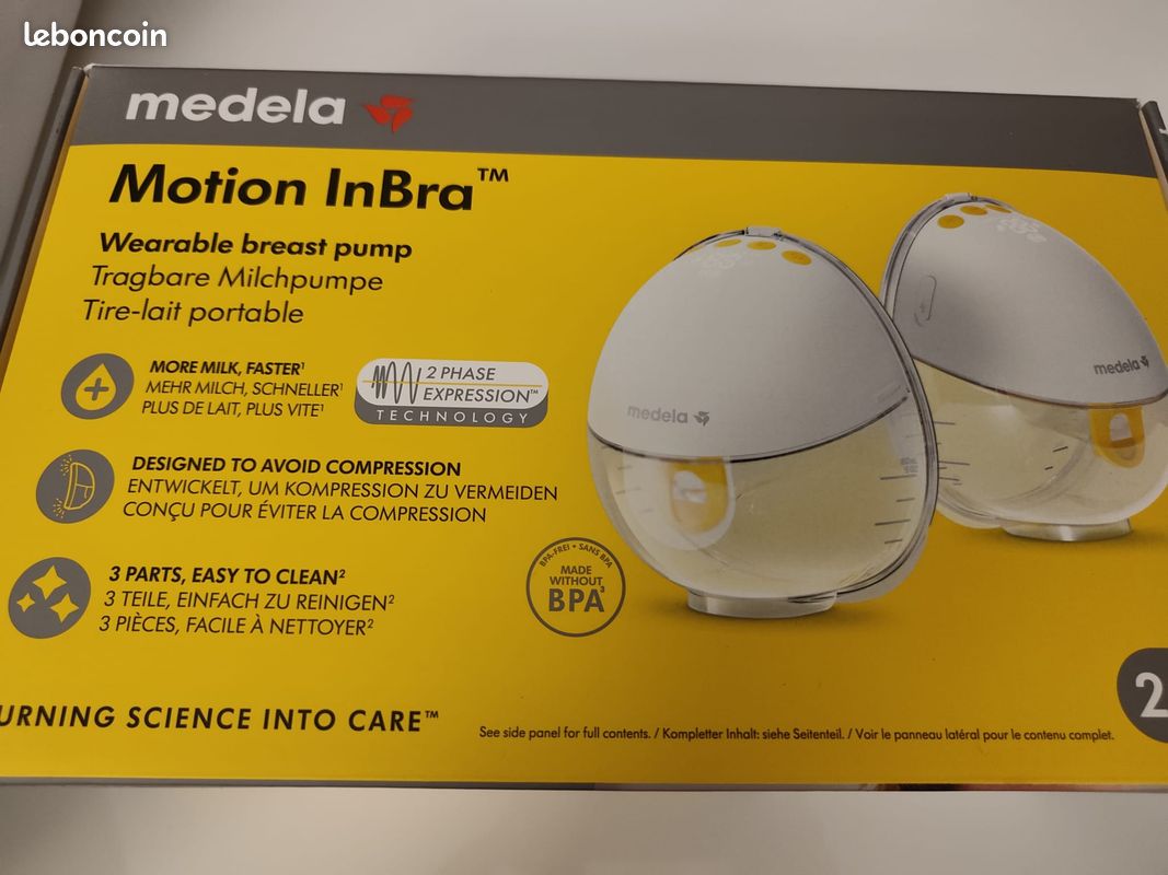 Motion Inbra - Tire-lait Électrique Simple Portable Mains Libres Ultra Leger Et Silencieux Technologie 7610472880845 Imitant le rythme naturel de bébé pour stimuler l’écoulement du lait et exprimer davantage de lait, plus rapidement., * Tire Lait Medela Motion InBra Portable Electric Breast Pump - Highly Efficient, Designed To Deliver Reliable Performance And Optimal Comfort, Effortless Handling And Discretion Assured Tire-lait électrique Portable Fondée en 1961 en tant que société internationale d'appareils médicaux, Medela est leader dans le domaine des produits d'allaitement et pour bébés basés sur la recherche, ainsi que des solutions de soins de santé pour les hôpitaux dans les domaines de la maternité, de l'unité de soins intensifs néonatals et des soins chirurgicaux, et de la formation clinique. Au boulot,à la maison ou en déplacement, vous pouvez tirer votre lait sans stress et sans perdre de temps. Nettoyage rapide, utilisation... 438,90 € ... Medela Motion InBra Tire-lait électrique portable – Très efficace, conçu pour offrir des performances fiables et un confort optimal. Manipulation... Avec des commandes intuitives et une fonction mémoire pratique pour enregistrer vos réglages., Conçu pour vous : Sa forme anatomique aide à éviter les points de compression localisés, tandis que son design léger s’intègre discrètement dans votre soutien-gorge. Recharge facile grâce au port USB-C, idéal pour les déplacements. En faisant progresser la recherche, en observant les comportements naturels et en écoutant nos clients, nous sommes le choix de santé de plus de 6 millions d'hôpitaux et de foyers dans le monde. Inclus : une téterelle de 24 mm avec trois inserts en silicone (21 mm, 18 mm et 15 mm) pour s’adapter à 95 % des tailles de mamelon., Chez Medela, nous sommes guidés par notre mission qui consiste à transformer la science en soins et à préserver la santé pour les générations à venir.