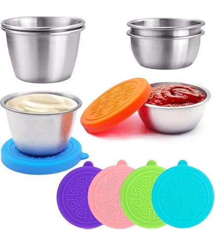 Améliorez votre expérience de repas avec nos contenants à vinaigrette pour le déjeuner, le compagnon idéal pour les salades, les collations et bien plus encore. 【Matériaux de Qualité Supérieure】Notre récipient à vinaigrette est fabriqué en acier inoxydable 304 durable qui peut résister aux mélanges chauds froids et acides. Apportez vos condiments préférés pour un voyage sans souci. Spécifications : L'ensemble comprend : six tasses à condiments avec couvercle Dimensions : 2,36 x 1,57 pouces (tasse en acier inoxydable), 2,55 x 2,55 pouces (couvercle en silicone) Poids : 22 g Couleurs disponibles : bleu ciel, bleu lac, rose, violet, orange, vert menthe Forme : carré Matériaux : silicone + acier inoxydable Caractéristiques : 1., Construction durable : les tasses en acier inoxydable sont robustes et résistantes à la casse, garantissant sécurité et longévité tout en étant faciles 2., Couvercles en silicone vibrants : chaque tasse est livrée avec un couvercle en silicone de haute qualité aux couleurs vives qui offre d'excellentes capacités d'étanchéité, gardant vos vinaigrettes en sécurité., 3., Léger et portable : conçu pour plus de commodité, ces gobelets à condiments de petite capacité facilitent le transport de vos sauces préférées en déplacement, vous permettant d'en profiter à tout moment, n'importe où., 4., Contrôle des déchets : la taille compacte vous aide à gérer le contrôle des portions, évitant l'utilisation excessive de vinaigrettes et réduisant les déchets. Contenants à vinaigrette à emporter, 6 pièces, 50 ml, en Que vous vous rendiez au bureau, à un pique-nique ou à la salle de sport, ces bols à trempette sont conçus sur mesure pour la facilité et le plaisir. Cet ensemble comprend six tasses à condiments colorées avec couvercle, conçues pour garder vos vinaigrettes fraîches et savoureuses. Ces contenants MKNZOME sont idéaux pour emporter vinaigrettes, dips ou snacks sans fuite. Les couvercles en silicone ferment bien et les bols sont faciles à... Les tasses de service d'assaisonnement sont faciles d'accès et parfaites pour stocker de petites collations dans les boîtes à lunch des tout-petits. Description du produit : récipient à vinaigrette à emporter Nous vous présentons notre récipient à vinaigrette, une solution polyvalente et pratique pour profiter de vos condiments préférés où que vous soyez. 【Conception Étanche】Nos mini pots à sauce sont livrés avec des couvercles en silicone pour assurer une bonne étanchéité gardant vos condiments et sauces frais dans votre sac sans fuite ni déversement. Petits Pots à Vinaigrette Portables Hililand Récipient à Vinaigrette En Acier Inoxydable Petit Récipient En Tupperware Sauce Matériaux de haute qualité : le récipient à salade est fabriqué en acier inoxydable 304 et en silicone de haute qualité, avec des bords lisses et des surfaces sans bavures, sans BPA, réutilisable. Facile à nettoyer : Nos récipients à vinaigrette sont adaptés au lave-vaisselle et au congélateur 【Léger et Portable】Cet ensemble de petites assiettes à apéritif est livré avec des couvercles en silicone colorés parfaits pour transporter vos condiments trempettes et sauces préférés.