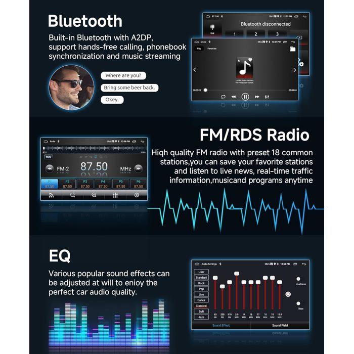 Wireless Carplay & Android Auto & Mirror Link : Autoradio Android pour Renault Dacia Sandero Tableau de bord soigné lors de l'utilisation de CarPlay/ Android Auto sans fil ! Autoradio Haute Performance]: Autoradio Android pour Renault Dacia Sandero 2014 2015 2016 2017 est équipé du dernier système Android et d'une mémoire 4GB RAM 64GB ROM, le processeur haute vitesse permet aux utilisateurs d'écouter de la musique ou de regarder des vidéos en douceur, écran HD 9 pouces avec une résolution de 1280 * 720, la... La connectivité Bluetooth permet le streaming de musique sans fil et les appels mains libres, ce qui améliore la sécurité et le confort. 1 Bluetooth/ DSP 2 Radio FM avec RDS Autoradio Android Dacia Duster Hodozzy 4G+64GB Android Autoradio Pour Renault Dacia Logan Duster CarPlay Android Auto Sans Fil GPS et Bluetooth,Paramètres EQ: Autoradio double din pour Renault Sandero prend en charge le GPS, qui peut fournir un guidage routier précis avec des informations sur le trafic en temps réel. 1 Attention 2 Écran IPS HD 3 Thème de Bureau Vous pouvez également regarder des vidéos Mirror Link sur ce grand écran Une variété de scènes sonores EQ au choix, ajustement de la division de fréquence choquant panorama surround, sonnant pour écouter n'importe quelle scène musicale Radio FM/RDS & Double Entrée D'adaptateur USB & 26UI Thèmes de Bureau : Autoradio 2 din carplay offre une expérience d'écoute riche avec la FM et le RDS, ce qui permet une réception claire et des informations sur le trafic. 1 Navigation GPS et Wifi 2 Commande au Volant 3 Vidéos Inversées 1 Dimensions et Liste 2 Câblage Cet autoradio Android pour Renault Logan/Sandero est équipé d'une caméra de recul. En marche arrière, l'écran affiche automatiquement des images stéréo de recul, ce qui rend le stationnement plus sûr et plus pratique 1 Carplay & Android Auto 2 Siri et Google Voice 3 Airplay & Cast De plus, la caméra de recul intégrée améliore la sécurité lors des manœuvres de stationnement en offrant une vue claire vers l'arrière, ce qui facilite les manœuvres dans les espaces restreints AWESAFE Autoradio Android 13 1Go+32Go pour Renault Dacia SANDERO