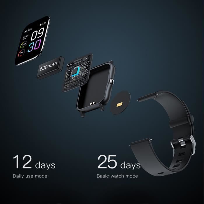 Alarme Sédentaire Alarme Vibrante Silencieuse Lorsque Vous Restez Assis Plus Longtemps Que La Durée Définie, Vous Aidant À Rester Actif Et À Atteindre Vos Objectifs De Remise En Forme. Montre Intelligente Multifonctionnelle : La Montre Intelligente Pour Hommes Possède De Nombreuses Autres Fonctions Quotidiennes, Telles Que Le Suivi D'Activité (Podomètre, Distance, Calories), L'Oxygène Dans Le Sang, Le Moniteur De Fréquence Cardiaque, Le Moniteur De Sommeil, 24 Modes Sportifs, Le Réveil, Le Contrôle De La Musique, Le Chronomètre, La Minuterie, La Montre Intelligente. Une Charge Magnétique Pendant 1,5 Heures Peut Durer 7 Jours Et Rester En Veille Pendant 30 Jours Après Une Utilisation Appropriée. Longue Durée Cette Montre Intelligente Se Charge Rapidement Et A Une Longue Durée De Vie De La Batterie. Luminosité De L'Écran Réglable Sur 4 Niveaux Et Plus De 100 Cadrans Parmi Lesquels Choisir. ), Réglage De La Luminosité Smartwatch 24 Modes Sport Montre Connectée Femme Homme, 1.69" Hd Smartwatch Intelligente Montre Montre Connectée 1.69 Pouces Montre Connectée Homme Femme 1.69 Smartwatch Sport Moniteur de Fonction Chronomètre Prend En Charge La Fonction Chronomètre Pour Mesurer Le Temps D'Entraînement Avec Plus De Précision. Contrôle De La Caméra La Montre Intelligente Peut Contrôler La Caméra Du Téléphone Et Vous Pouvez Prendre Une Photo En Appuyant Sur Le Bouton De La Montre Intelligente. Cette Montre Intelligente Pour Hommes Peut Également Surveiller Automatiquement Votre Sommeil, Afin Que Vous Connaissiez Les Données Sur L'Éveil, Le Sommeil Léger Et Le Sommeil Profond. Et pour couronner le tout, elle a un écran tactile HD en couleur de 1,69 pouces, avec une qualité d'image incroyable. Vous pouvez même personnaliser l'arrière-plan avec votre photo préférée et créer vos propres cadrans de montre uniques Vous N'Avez Pas Besoin De Le Toucher, Vous Avez Donc Les Mains Libres Lorsque Vous Êtes Occupé. La Montre De Sport Dispose De 24 Modes Sportifs Pour Répondre À Vos Besoins Sportifs Quotidiens. Vous Pouvez Également Choisir N'Importe Quelle Image De Votre Téléphone Comme Fond D'Écran Pour Montrer Votre Style Personnel. Montre Connectée, 1,69 Smartwatch Homme Femme Avec Podometre... Montre De Fitness Et 24 Modes Sportifs : La Montre De Sport Pour Femme Enregistre Avec Précision Vos Pas, La Distance Parcourue, Les Calories Brûlées Et Votre Fréquence Cardiaque Sur Votre Poignet Tout Au Long De La Journée Et Vous Motive À Atteindre Votre Objectif D'Entraînement Avec Des Statistiques En Temps Réel Sur La Montre. Le Tracker De Fitness Pour Femmes Peut Suivre Les Données Du Podomètre Commande Au Poignet Levez Votre Poignet Pour Éclairer L'Écran.