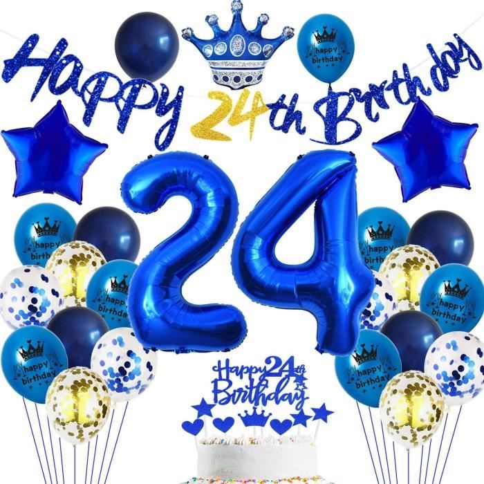 Ballon 30 Ans Décoration 24 Ans Anniversaire Homme Femme, Ballon 24 Ans Anniversaire Décoration Anniversaire 24 Ans Bleu Décoration anniversaire 24 ans homme/femme vert - Ballons 24 ans Ballons Bleus 24 Ans - Décorations D'Anniversaire Pour Homme - Décorations D'Anniversaire - Homme - Bleu - Ensemble De 24 Jo[p11074... anniversaire deco bleu set : Ballons d'anniversaire vous obtiendrez une fête de thema bleu unique qui sera une expérience inoubliable et spéciale Célébrez avec notre set de ballons de décoration bleu,parfait pour garçon/homme. Ballon d'anniversaire décoratif de haute qualité : en latex naturel de haute qualité, durable et facile à gonfler, supporte l'hélium ou l'air. Vous n'avez pas à vous soucier de vous déchirer ou d'éclater après le gonflage. 24 ans de déco d'anniversaire bleu set : 1 x bannière Happy Birthday,2 × 32'' ballons numériques nombre '24' ballons en plastique,2 x 18'' ballons en plastique bleu étoile, 6 × 12'' ballons en latex bleu foncé,6 × 12'' ballons en latex blanc ''Happy Birthday',6 x 12'' ballons confettis, 1 set ''Happy 24th Birthday'' déco de gâteau(1 x déco de gâteau Joyeux anniversaire, 3 x déco de gâteau cœur, 3 x déco de gâteau étoile, 1x déco de gâteau couronne) 1 rouleau de ruban décoratif., 24 . Ballons en latex confettis : une fois gonflés, frottez doucement les ballons avec du tapis, de la soie, des cheveux (de préférence) et faites-les rouler. L'électricité statique est une bonne amie qui t'aide à fixer les confettis sur les côtés du ballon. Garantie à vie - Si, pour une raison quelconque, tu n'es pas satisfait de ton achat, fais-le nous savoir et nous t'offrons une garantie 100% satisfait ou remboursé dans les 24h. 24e Anniversaire Chevauchement Numéro Logo Simple Bleu Et Gris Isolé...