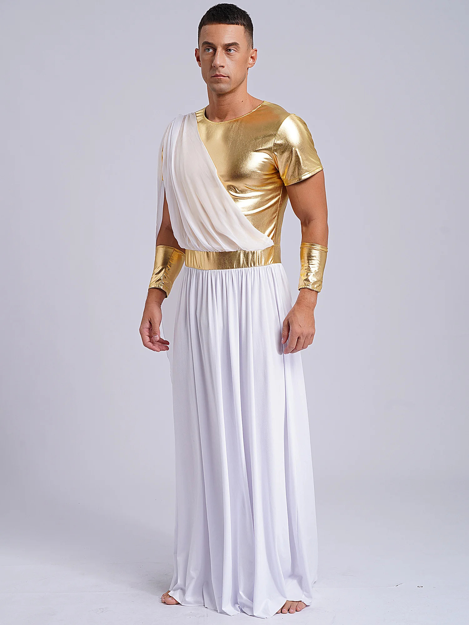 23 vendus Costume de luxe dieu grec ancien Zeus pour hommes, Costumes de fête de la semaine du livre, d'halloween, costumes de cosplay pour adultes · 4 vendus... La robe grecque antique pour hommes est conçue avec un col rond, des manches courtes, des bordures Or et une taille métallique, un look grec vintage Épaule un drapé avec un bord à motif rétro est cousu sur la toge pour éviter qu'elle ne glisse vers le bas, faisant écho aux Or décorations de la robe Costume Déguisement Homme Sexy Adulte Costume Grèce Antique Rome Toge Déguisement Grec Fabriqué en mélange de polyester doux pour la peau, respirant et sans boulochage, le tissu de qualité vous permet de vous sentir confortable et doux toute la journée Ce déguisement d'empereur Grec pour homme se compose d'une robe, d'une coiffe et d'une ceinture (chaussures non incluses). La robe longue est blanche. De larges galons noir et or viennent agrémenter l'encolure, les manches et le bas de la robe Deguisement Dieux Grec Homme Adulte Empereur Romain César Grec Costume de Dieu Grec Grèce Romain Halloween Carnaval Fête Déguisement grec homme : Deguise-toi, achat de Déguisements adultes