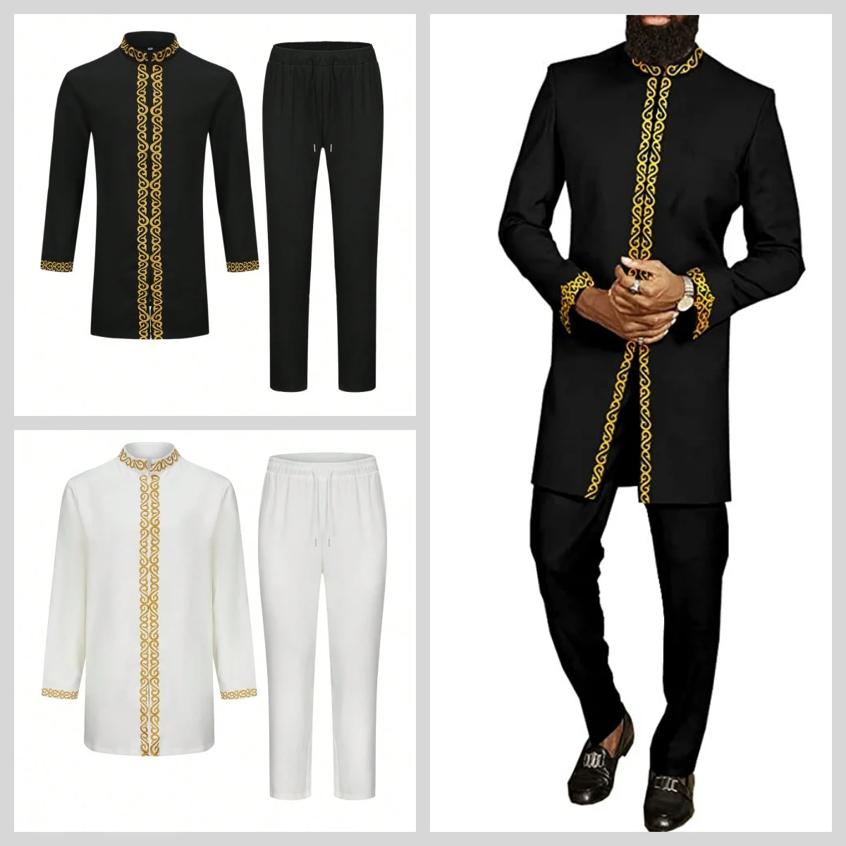 Tenue Ethnique Coton Ramadan Tenue Africaine Pour Hommes, Costume Ethnique Traditionnel, Manches Tenue Africaine Homme Dashiki 2 pièces/set Blazer long noir à double boutonnage homme motif dashiki avec pantalon, broderie dorée, manches longues, col montant, pantalon à taille élastique, tenue aicaine, ensemble chemise et pantalon casual pour homme, nouveau design pour toutes les saisons, convient pour les fêtes, galas, mariages, événements culturels... Hommes vêtements africains imprimer Henley chemises à manches longues traditionnel afrique mi Le style africain super cool vous rend plus accrocheur dans la foule XATANT Vêtements Afrcans Pour Hommes Chemse Dashk À Manches Longues Et Pantalon Ankara 2... Entretien : lavage en machine ou à la main Vêtements pour quatre saisons, tissu respirant pour vous sentir à l'aise au quotidien. Impression numérique 4D. Qualité supérieure : excellent tissu rend l'ensemble africain 2 pièces doux et doux pour la peau, facile à sécher, ne se décolore pas, ne bouloche pas.