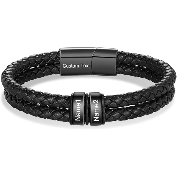 Bracelet Personnalisé Homme AOTXOXTOA Personnalisés Nom Bracelet Pour Femme Garçons Hommes Filles Acier Inoxydable Cuir Véritable Gravure Manchette Réglable Cadeau De Fête Des Pères Bracelet Cuir Véritable Acier Inox ÉPILEPSIE - Bracelet noir en cuir véritable pour hommes, bijoux'urgence, gravure gratuite, glace Vnox-Bracelets personnalisés avec nom de famille pour hommes, cuir tressé en couches noires, breloques en acier inoxydable, cadeau personnalisé pour la fête... Le bracelet en cuir véritable est léger et confortable à porter TAILLE ET COULEURS ET MOTIFS - La longueur du bracelet est de 8,07 pouces, veuillez mesurer la taille de votre poignet avant de le commander. La longueur de l'étiquette en acier inoxydable est d'environ 39 mm. BRACELET PERSONNALISÉ AVEC GRAVURE - Produit personnel gratuit gravé au laser, faites un cadeau unique pour celui que vous voulez offrir. CADEAU COMMÉMORATIF - Cadeau personnalisé à votre amoureux, petit ami, père, mari ou amis pour un anniversaire, une remise de diplôme, Thanksgiving, Noël, la Saint-Valentin. SERVICE APRÈS-VENTE - Garantie de remboursement de 90 jours. Si vous n'êtes pas satisfait de l'effet de gravure, veuillez nous contacter et nous le résoudrons à tout moment Bracelet cuir pour homme Gentleman - Bijoux personnalisés pour hommes