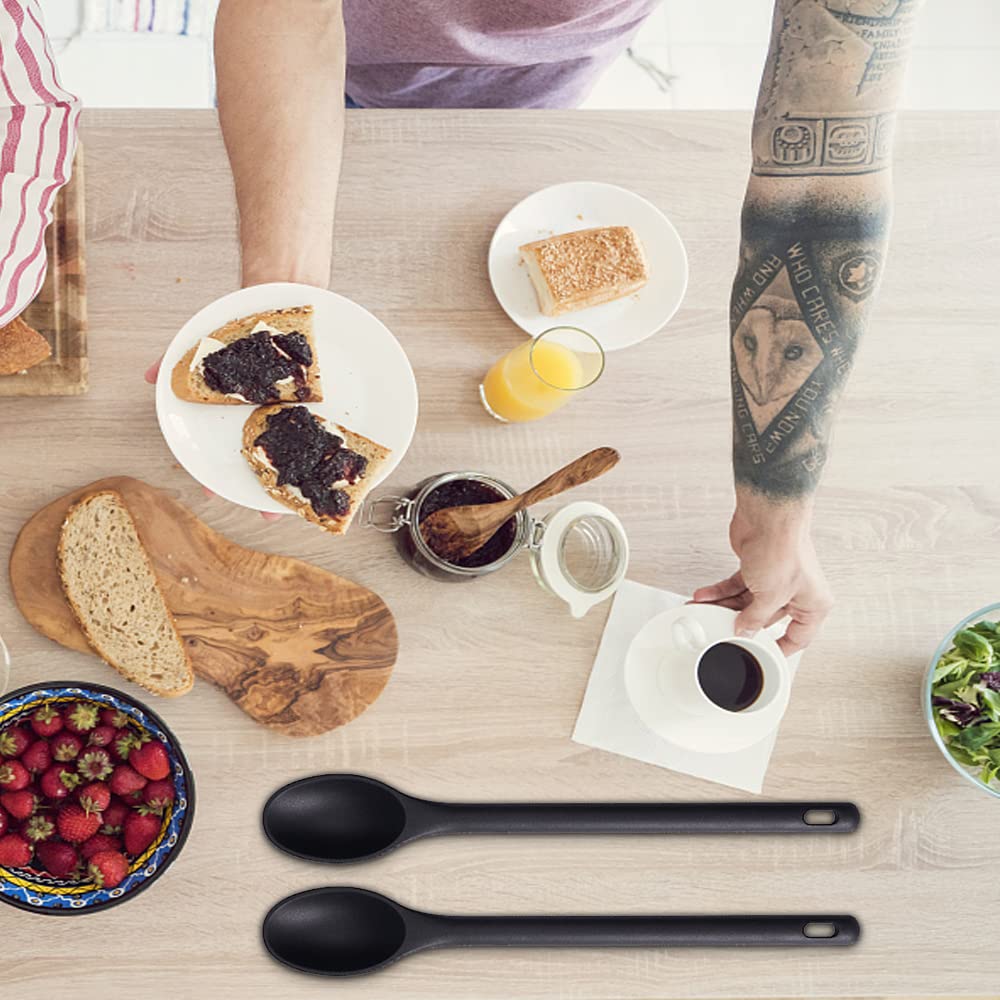 Cuillères Cuisine Résistantes Chaleur Honatrv 2 Pièces Cuillère À Mélanger Silicone Soupe Haute Louche Silicone Qualité Alimentaire Description du produit Scope of Delivery Vous recevrez deux louche cuisine, une noire et une rouge, chaque cuill re de cuisson mesure 27,5 * 5,7 cm et p se 78 g.Le design ergonomique unique est confortable tenir et facile utiliser.La cuill re de cuisson en silicone peut tre accroch e dans la cuisine pour conomiser de l'espace. Haute Qualit La Cuillere plastique est faite de silicone de... Ustensiles de Cuisine Silicone, Set of 2 Louche Cuisine [résistant à la chaleur]: Cuillere de service en silicone pour la cuisson peut résister à des températures allant de -40 ℃ à 230 ℃. Parfait pour portionner et servir des soupes, des ragoûts et du porridge. Le matériau en silicone sain et sûr est sans danger pour les poêles antiadhésives... Il est parfait pour les plats chauds et la cuisine. [Matériaux de haute qualité]: louche à soupe en silicone est fabriquée en Silicone de qualité alimentaire de haute qualité, résistance aux températures élevées, flexibilité, SANS BPA, Parfait pour cuisiner, mélanger et remuer. [L'emballage contient]: Le jeu de cuillères en silicone comprend 2 Cuillère solide, chaque cuillère de cuisson mesure 30., 5 x 4., 6cm et pèse 68., 9g, quantité suffisante pour répondre à vos besoins. Spécification Couleur: Noir Matériau: Silicone de qualité alimentaire Dimensions: Environ 30., 5 x 4., 6 cm Plage de température: -60 °C à 230 °C Poids : 68., 9 g/pièce Contenu de la livraison 2 x Cuillère en silicone à long manche