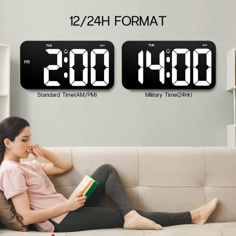 Atomic Horloge Murale Numérique Avec Écran Lcd, Fonctionne À Piles, Température Intérieure... Visibilité optimale : Les grands chiffres et l'espacement des polices permettent une lecture claire même à distance Alimentation pratique : Fonctionne avec des piles standard, facilitant le remplacement et assurant une autonomie prolongée Horloge Chambre JoFomp Horloge Murale Numérique LCD à Piles, Horloge Murale Horloge LCD Bureau Installation facile : L'horloge est simple à installer et à utiliser, permettant d'économiser du temps lors de la mise en place L'horloge numérique murale est conçue avec un support de bureau caché (situé dans le compartiment à piles) et deux trous de suspension, vous permettant d'accrocher l'horloge numérique à piles ou de la placer sur une table selon vos préférences personnelles, répondant à différents besoins Cette horloge murale numérique peut être vue clairement même à distance en raison des grands chiffres et du bon espacement des polices. Acheter EM3217 Ultra-clair LED grand écran XXL horloge murale salon réveil température horloge avec