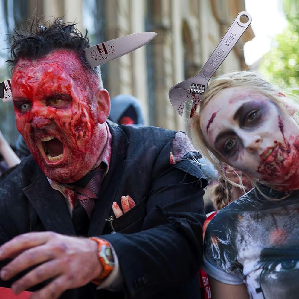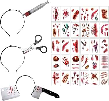 Les couteaux d'Halloween sont peints en rouge sang, parfaits pour effrayer les gens lors d'une fête d'Halloween et laisser des souvenirs heureux et inoubliables à vous, votre famille et vos amis. Faux Couteau Kiuiom Serre Tete Halloween Horror,Bandeau ,Bandeau De Accessoire Cosplay Halloween Sanglant Faux Couteau Description du produit Caractéristiques : 1., Ce serre-tête d'horreur d'Halloween aux bords tranchants et aux effets sanglants crée une impression choquante sans danger réel., 2., Ce serre-tête couteau d'Halloween est confortable à porter et peut être utilisé longtemps, s'adaptant parfaitement à la taille de la tête des enfants et des adultes., 3., Ce serre-tête avec un couteau ensanglanté a un aspect très sanglant et est une décoration parfaite pour les lieux nécessitant une atmosphère terrifiante. Serre tête hache halloween #573 - La Caverne de Jou 【Matériau de qualité supérieure】La taille du serre-tête d'Halloween convient à tous. Fabriqué en plastique de haute qualité, il est inodore, sûr et confortable à porter. Serre-Tête Couteau Halloween - L'accessoire Frisson pour une Soirée... Ces accessoires d'horreur sanglants réutilisables sont parfaits pour les jeux de rôle d'Halloween et contribuent à l'ambiance horrifique d'Halloween. Avertissement De Sûreté NO Le faux sang peut être utilisé pour le maquillage, est facile à nettoyer et peut être utilisé avec d'autres accessoires et costumes. Serre-tête Trompe L'œil - Couteau Dans Le Crâne - Maquillage - Rue de la Fête 【Contenu de l'ensemble】Contient 1 serre-tête machette, 1 serre-tête scie, 1 serre-tête ciseaux et 30 tatouages autocollants d'Halloween. Léger, il ne serre pas, même porté longtemps, pour une meilleure expérience.