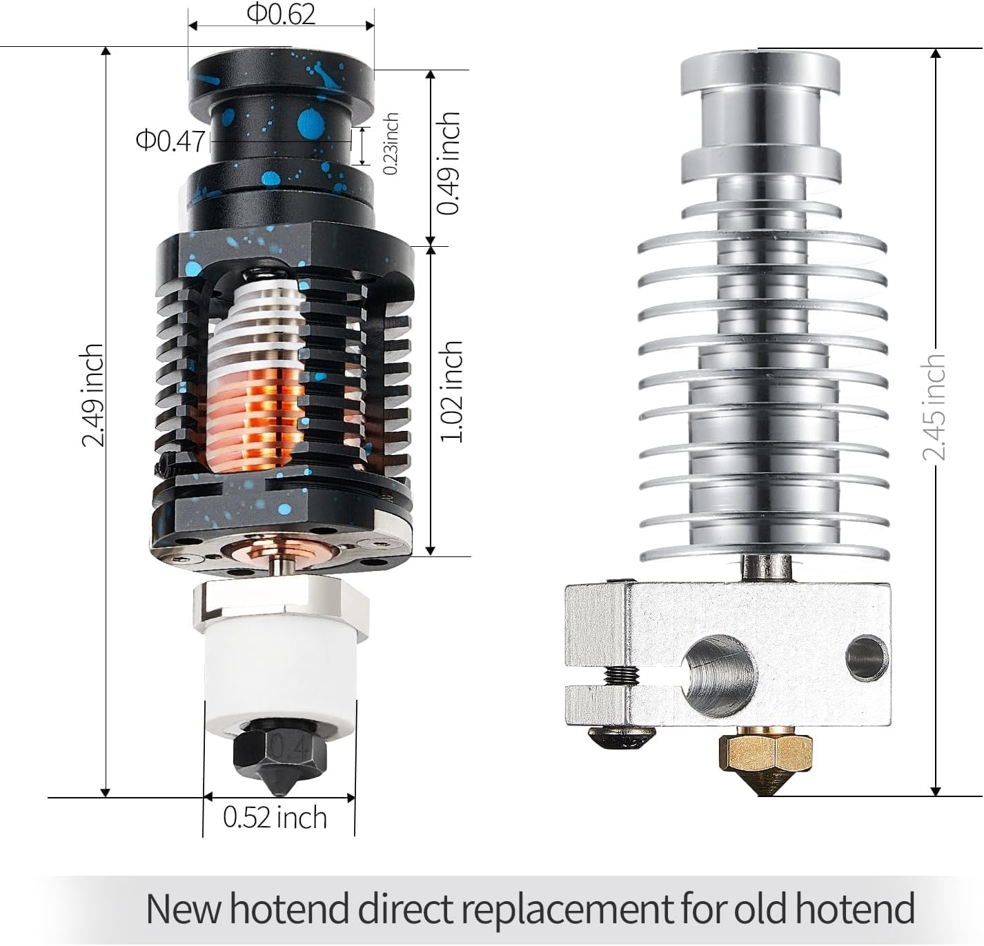 Les meilleures offres pour CHC V6 Hotend Ceramic All-Metal: Compatible with hot end Full kit Voron 0.1 V... sont sur Comparez les prix et les spécificités des produits neufs et d 'occasion Pleins d 'articles en livraison gratuite Buse durcie de qualité : la buse de v6 céramique Hot end Superior précision, pression à haute température de 450 °C et excellente résistance à l'usure, de sorte que l'impression PLA ABS fibre de carbone PEEK, etc Câble prolongé de 1,2 m : Voron 2., 4 hotend a un chauffage en céramique de 24 V 60 W et une thermistance 3950 100 K, offre une compatibilité transparente avec de nombreuses imprimantes 3D Triangle Labs K1 CHC V6 Hotend Céramique Tout Métal : Compatible Avec Hot End Hotend Tout Métal Imprimante 3D Haute qualité : céramique v6 hotend utilisation cuivre et alliage de titane construit dissipateur thermique, dissipation thermique 3 fois par rapport aux anciens dissipateurs thermiques Sant Kuee Chc-V6 Hotend 24 V 50 W Seramik Isıtma Çekirdek Baskı Kafası... 1., Noyau chauffant en céramique amélioré : meilleur pour un contrôle rapide et précis de la température, assure une puissance de chauffage uniforme., 2., Haute qualité : dissipateur thermique en cuivre et en alliage de titane, offre une meilleure efficacité de dissipation de la chaleur par rapport aux dissipateurs thermiques traditionnels., 3., Buse fabriquée avec précision : précision dimensionnelle exceptionnelle, température d'impression élevée de 450 °C et excellente résistance à l'usure, permet l'impression de différents consommables 3D., 4., Câble prolongé de 1,2 m : chauffage en céramique 24 V 60 W et thermistance 3950 100 K, offre une compatibilité transparente avec de nombreuses imprimantes 3D., 5., Installation facile : extrémité chaude facile à installer sur Voron V2., 4 Pursa, ou modifiée sur l'imprimante Ender 3 Series Prusa – kit Hotend i3 MK3 MK2S/MK2.5 avec chaussette en silicone