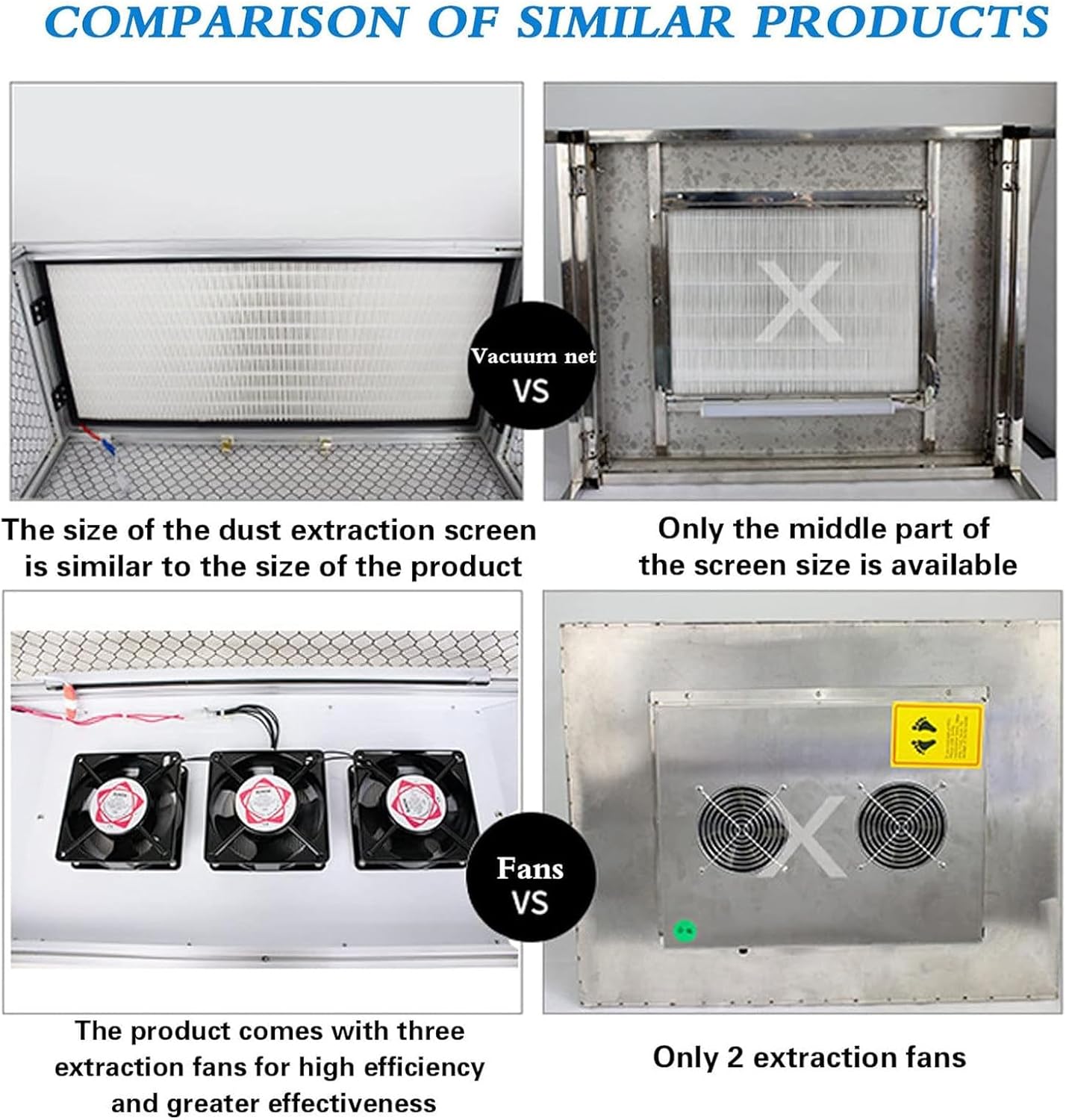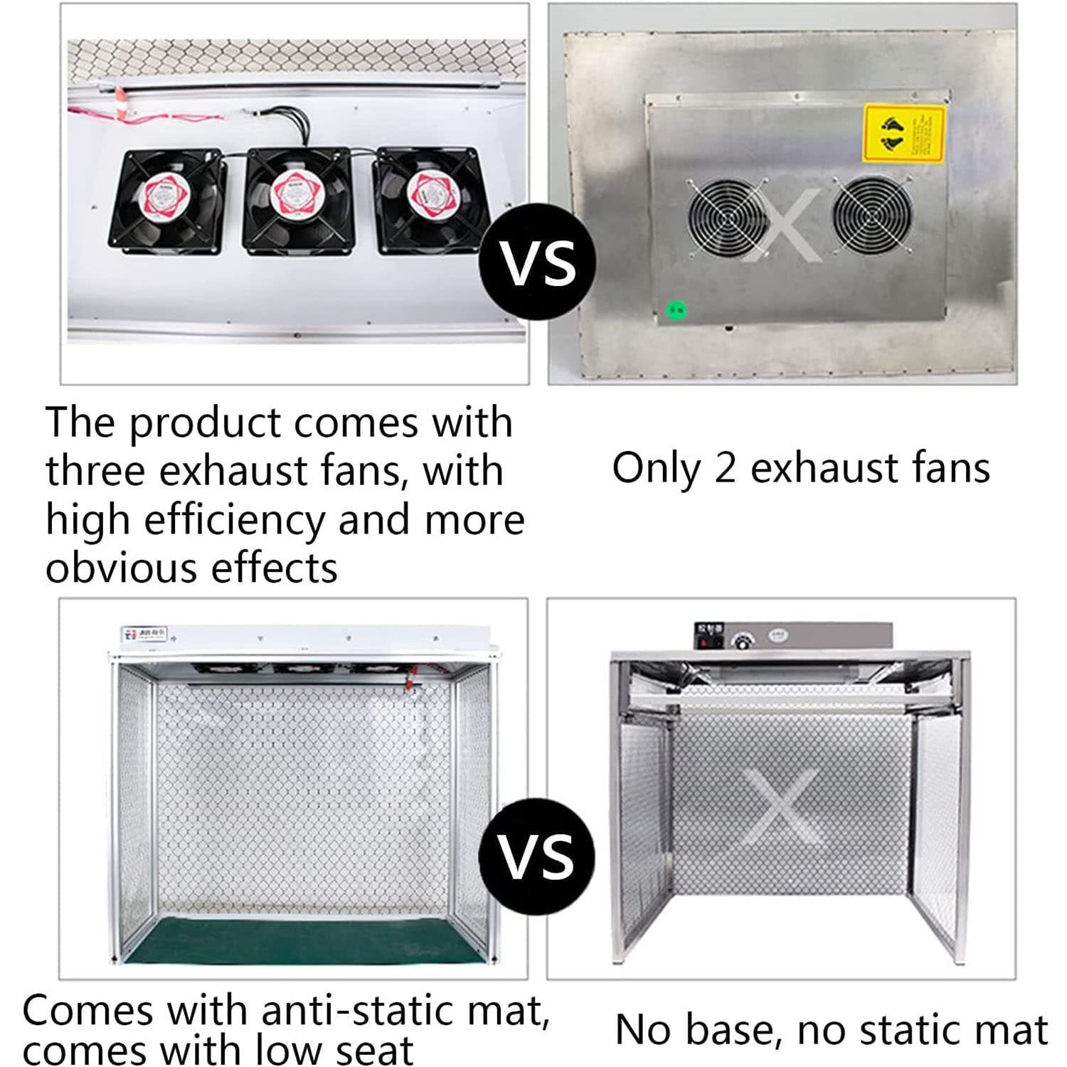 Poste Travail Sans Poussière Filtre HEPA Hottes à Flux Laminaire Vertical Et Horizontal - PSM Et Hottes PCR ESCO - Equipement - Matériel De Laboratoire Station Travail Salle Blanche Portable Hotte de laboratoire - Loïs 1200 - Erlab - sur pied / à flux laminaire vertical Cette hotte à flux laminaire est indispensable pour les réparations de précision ! Zone de travail 26x12x20 pouces (66x31cm). Flux d'air vertical, filtre... ➤Caractéristiques principales :-1., Paillasse avec filtre HEPA : Le filtre haute efficacité capture 99,99 % des particules ≥ 0,3 µm, garantissant un air pur., -2., La conception à trois ventilateurs assure un flux d'air uniforme et un fonctionnement silencieux., -3., Rideau en PVC antistatique : Empêche les dommages statiques aux composants sensibles et aux équipements de précision., -4., Propreté ISO 5 / Classe 100 : Offre un environnement propre pour des tâches critiques sûres et efficaces., -5., Espace de travail spacieux, idéal pour la réparation de téléphones et les travaux de laboratoire., -6., Pieds antidérapants pour une stabilité optimale du poste de travail. Nous nous ferons un plaisir de vous aider et vous répondrons dans les 24 heures. 【Rideau antistatique avec filtre HEPA】Le filtre HEPA haute efficacité élimine 99,99 % des particules ≥ 0,3 µm. La hotte à flux laminaire vertical est un poste de travail de haute qualité, sans poussière, conçu pour offrir un environnement de travail propre, sûr et efficace pour la réparation de téléphones portables, les travaux de laboratoire, la culture tissulaire et autres applications en salle blanche. Rideau en PVC transparent avec encre conductrice pour une propreté optimale, certifié ISO 5 / Classe 100., 【Trois ventilateurs silencieux】Hotte à flux laminaire triple ventilateur, trois puissants ventilateurs en aluminium pour un flux d'air constant. Le conduit d'aération intégré réduit le bruit, prolonge la durée de vie du ventilateur et améliore l'efficacité pour un travail concentré. 【Tubes à économie d'énergie intégrés】L'éclairage LED intégré de la hotte à flux laminaire portable illumine l'espace de travail pour un travail concentré et une efficacité énergétique optimale. manipuler sous la hotte à flux laminaire