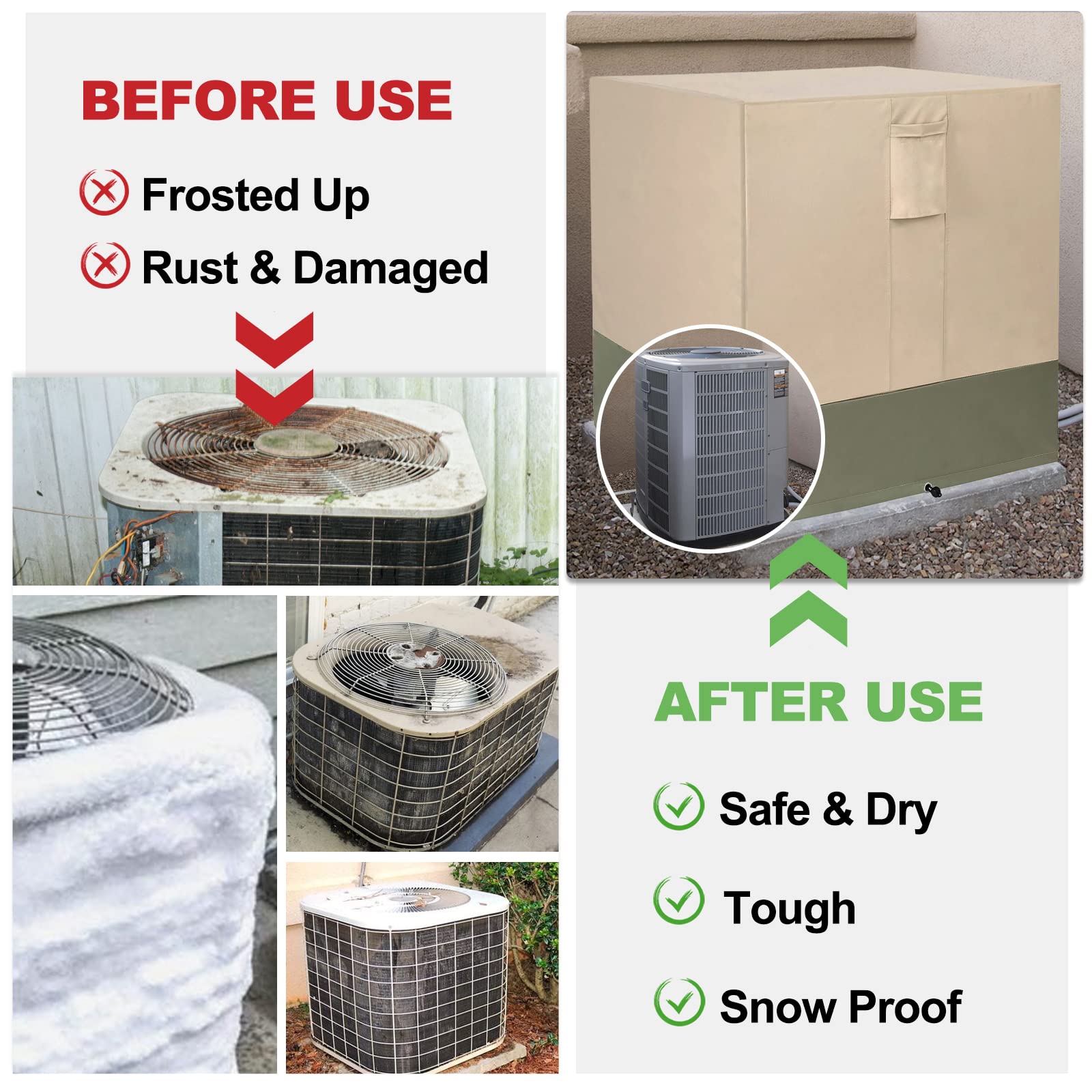 Housse de Climatiseur de Fenêtre Imperméable et Anti-Poussière Cela minimise l'impact du bruit de l'unité extérieure sur l'environnement intérieur et la vie quotidienne des résidents. Coque Climatiseur 105x40x75 Cm Housse De Climatiseur De Fenêtre Housse De Coque Intérieure Isolée Anti Housse Hivernage Pompe à Chaleur Insonorisation et réduction du bruit : le couvercle du climatiseur réduit le bruit généré pendant le fonctionnement du climatiseur en incorporant des matériaux réduisant le bruit tels que l'isolation phonique., coton. Housse Universelle Pour Climatiseur Extérieur, Housse De Climatisation... Polyvalent : Compatible avec la plupart des unités extérieures. Veuillez mesurer votre unité extérieure avant de commander. Cette housse protège de la pluie, de la neige, de la poussière et du soleil.Matériaux de haute qualité : La housse pour unité extérieure du climatiseur est fabriquée en tissu imperméable résistant à l'eau, à la poussière, à la neige et au soleil. Elle... Résistance à la pluie et au vent : le couvercle du climatiseur est résistant à l'eau, empêchant efficacement l'eau de pluie et le sable de pénétrer dans l'appareil, protégeant les composants électriques internes contre les dommages et prolongeant la durée de vie du climatiseur. Résistance à la pluie et au vent : le couvercle du climatiseur est résistant à l'eau, empêchant efficacement l'eau de pluie et le sable de pénétrer dans l'unité, protégeant ainsi les composants électriques internes contre les dommages et prolongeant la durée de vie du climatiseur. Design simple : le couvercle du climatiseur présente design simple et élégant, s'intégrant harmonieusement à l'environnement extérieur et améliorant l'attrait esthétique général. Conception simple : le couvercle du climatiseur présente un design simple et élégant, se fondant harmonieusement dans l'environnement extérieur et améliorant l'attrait esthétique général. Spécification : Type d'article : Couvercle de climatiseur de fenêtre Matériau : Polyester, caoutchouc Liste des paquets : 1 x Couvercle de climatiseur de fenêtre Description du produit AUNMAS Housse de protection pour unité de climatiseur de fenêtre, 105 x 40 x 75 cm / 41,3 x 15,7 x 29,5 pouces