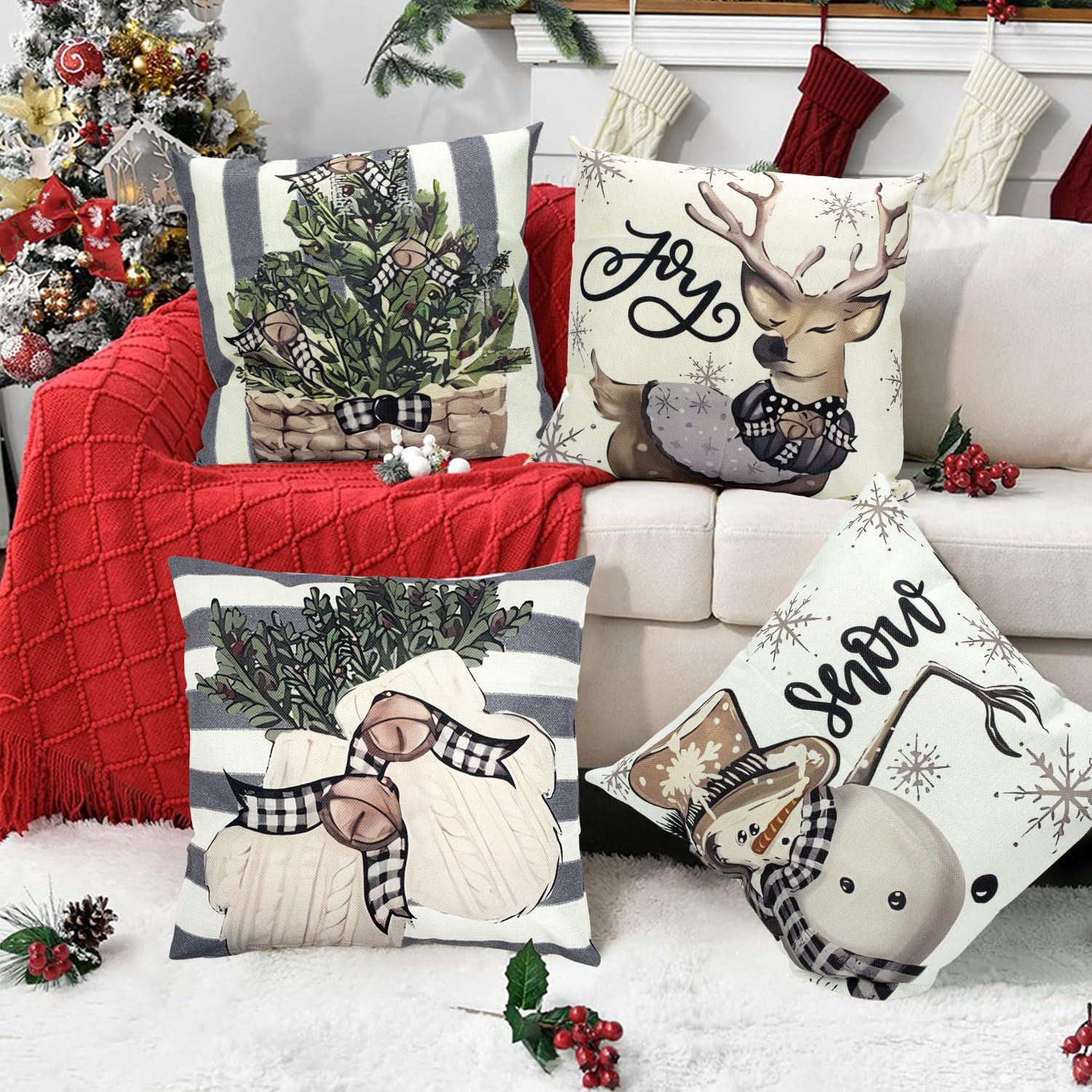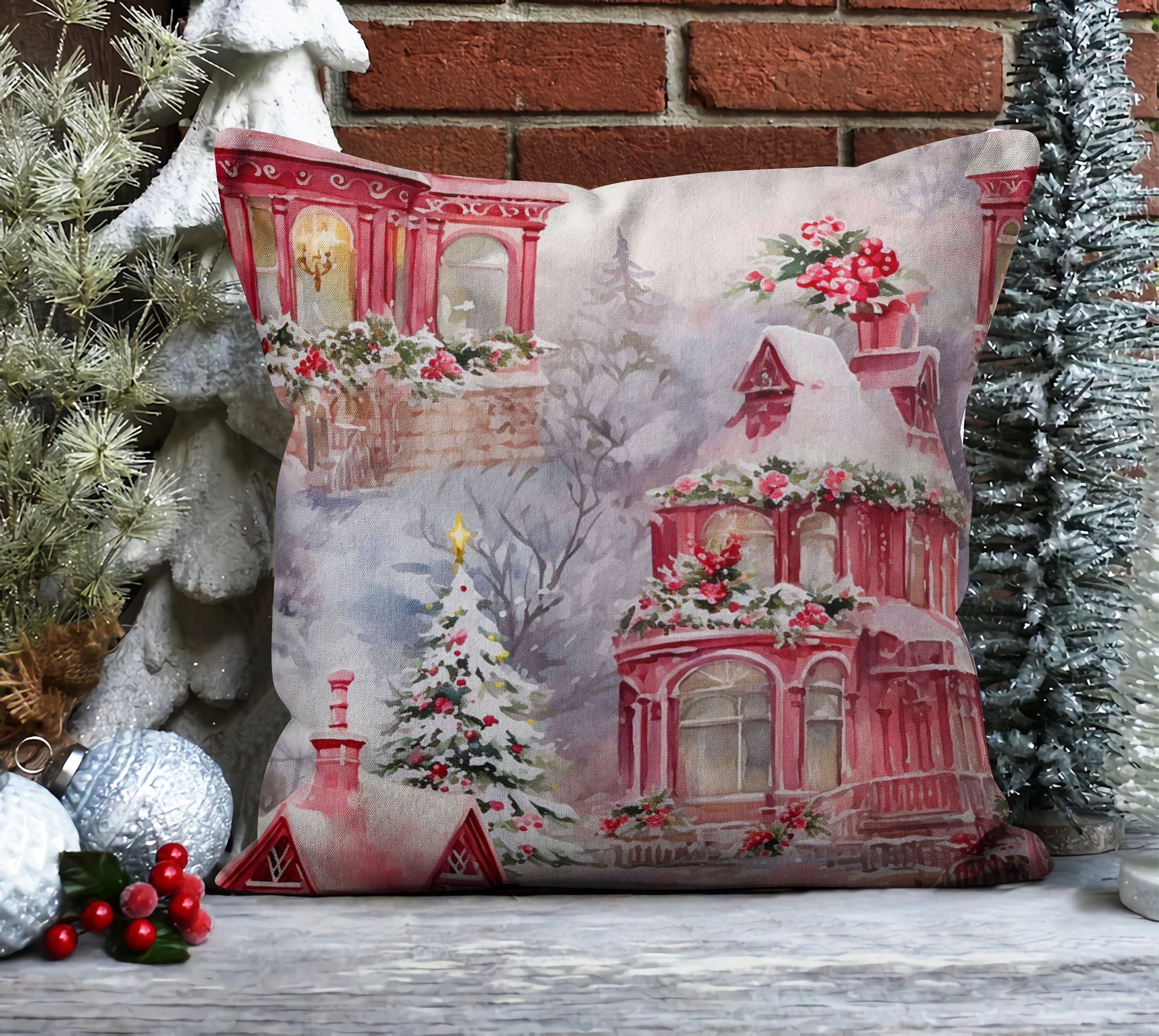 Housse De Coussin Noël, Pomme De Pin Et Fleur De Houx Rouge, Housse De Coussin Floral Joyeux D'hiver, Décoration De Noël, Toutes Les Tailles - France Housse de coussin de Noël 45,7 x 45,7 cm – Housse de coussin décorative d'hiver pour décoration de maison de vacances, imprimé houx avec boule rouge, flocons de... Housse de coussin décorative | 45,7 x 45,7 cm – Étoile de