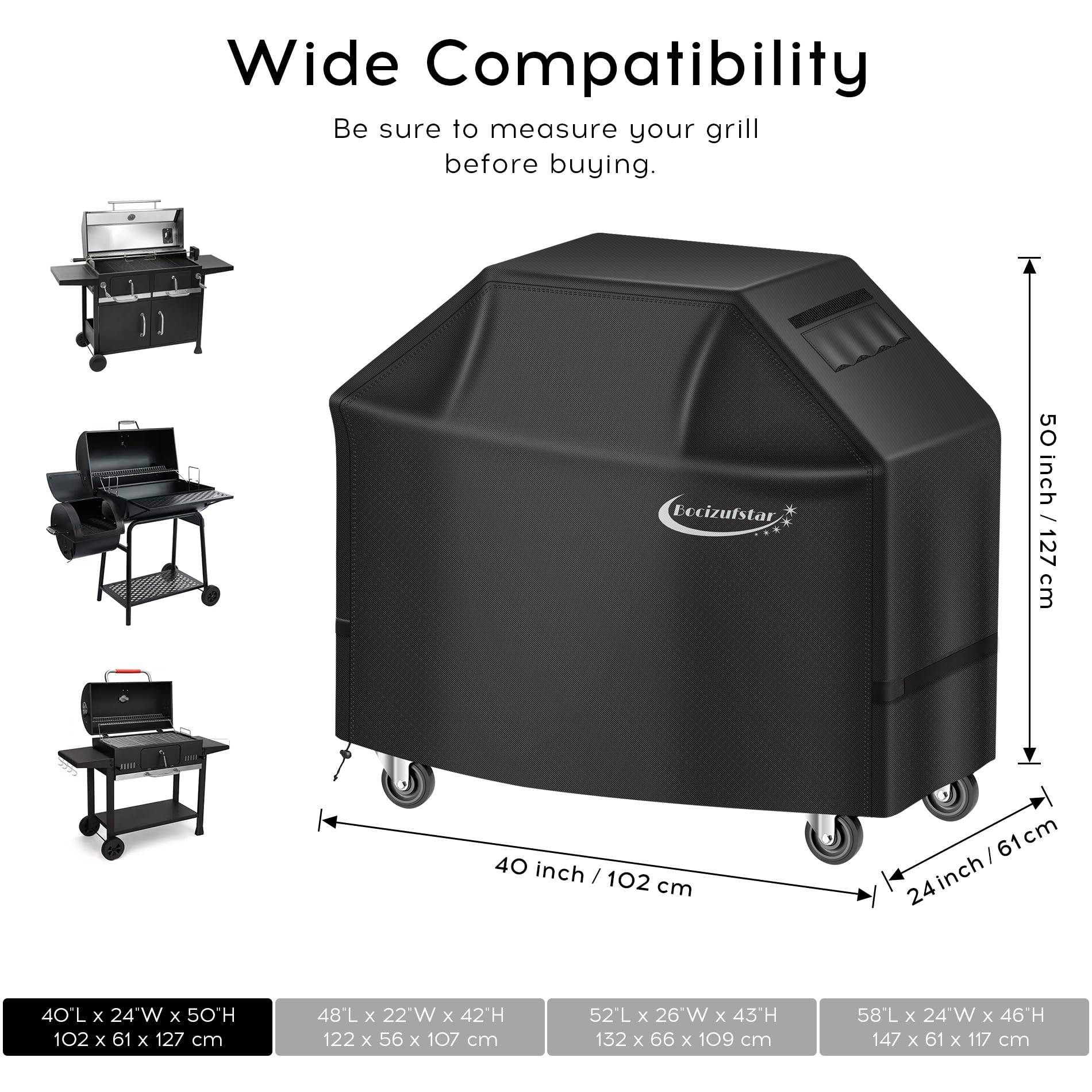 Matériaux fiables : fabriqué avec un tissu robuste qui garantit la durabilité contre les rigueurs d'une utilisation en extérieur tout en conservant une apparence élégante. Couverture Tissu Robuste 40x40x50cm Housse De Protection Pour Barbecue - Housse De Protection Imperméable - Avec Sac De Rangement Housse De Protection Barbecue Caractéristiques : * Design à double usage : spécialement conçu pour couvrir les friteuses et les grills, offrant une protection dans les barbecues dans la cour. Imperméable pour la sécurité de la friteuse : fournit une barrière efficace contre la pluie et l'humidité, protégeant votre friteuse contre les dommages potentiels par temps imprévisible * Numéro OEM : non fourni. * Compatibilité : pour friteuses profondes et barbecues dans la cour. Housse de Protection pour Barbecue à gaz 165cm - Bbq Buddy - Noir - Résistante à l'eau et aux UV... * Compatibilité haute universalité : oui. * Matériau robuste : fabriqué à partir de tissu, offrant une bonne durabilité pour résister à une utilisation régulière et aux éléments extérieurs. Nombre de pièces : 1., Contenu de l'emballage : 1 housse Housse Universelle 50x40x32cm Housse De Protection Pour Friteuse à * Anti-poussière pour le barbecue : protège le barbecue de la poussière, il reste propre et prêt à l'emploi. Couverture multi-usage : cette housse unique convient aux friteuses et aux barbecues de cour, offrant une protection complète pour tous vos besoins de cuisine en un seul produit.