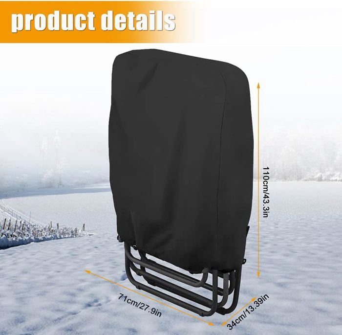 De plus, notre housse de chaise de jardin est livrée avec un sac de rangement pour un rangement facile. Cette conception ingénieuse améliore la durabilité et la résistance à la déchirure de la housse. Housse Rangement Facile OFFCUP Housse De Protection Pour Chaise Pliante, 93*82CM Housse Empilable Avec Corde Ajustable Housse De Protection Pour Chaise Pliante Oxford Imperméable Et Anti-Uv... Vous n'avez pas à craindre qu'elle ne soit emportée par le vent. Contenu :2pc* housse de chaise pliante + sac de rangement Caractéristiques : Dimensions : 93 x 82 x 22cmCouleur : Noir Matériau : 210D Tissu OxfordPoids : 457 g Caractéristiques :➡️ Cette housse de chaise de jardin est conçue pour offrir une protection complète aux chaises de terrasse, créant ainsi un jardin élégant. L'intérieur est doté d'un revêtement PU anti-UV, anti-décoloration, anti-poussière et imperméable. Elle peut également être utilisée à l'intérieur pour prolonger la durée de vie de vos meubles. Essuyez-la simplement avec un chiffon humide et séchez-la rapidement au soleil. [Housse de Chaise Empilable] La housse de chaise zero gravity, une fois dépliée, mesure 93 x 82 x 22 cm, ce qui la rend idéale pour tous types de chaises longues, chaises longues pliantes et transats pliants. Ne pas laver en machine pour protéger son revêtement imperméable et garantir une longue durée de vie. [Matériau Durable et Imperméable] Notre housse de chaise longue de jardin est fabriquée en tissu Oxford 210D, léger, respirant, durable et résistant aux déchirures. Housse de Chaise Empilable] La housse de chaise zero gravity, une fois dépliée, mesure 93 x 82 x 22 cm, ce qui la rend idéale pour tous types de chaises longues, chaises longues pliantes et transats pliants. Veuillez vérifier les dimensions de vos Son entretien est simple et pratique. [Protection pour Meubles] Cet ensemble de housses de chaise pliantes convient à une variété de chaises de jardin. Nous vous recommandons de choisir une housse de 4 à 5 cm plus grande que la taille réelle de la chaise afin de couvrir parfaitement chaque recoin. Housse De Chaise De Jardin 2 Pièces, Housse De Protection Pour Chaises