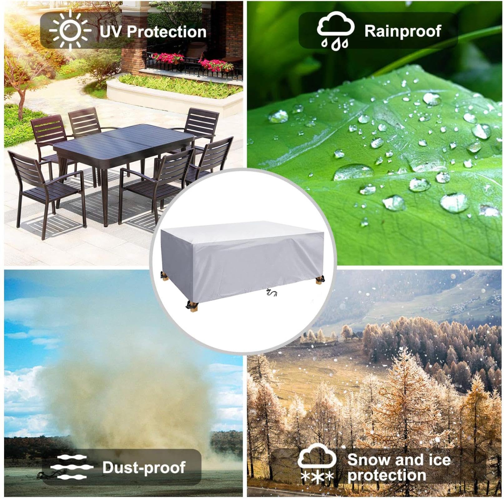 Housse de protection pour table de jardin et canapé de planeur en * Étanchéité améliorée : dotée d'un revêtement imperméable en polyuréthane et d'une couche de couture de bande, cette housse empêche efficacement les fuites d'eau et garde vos meubles au sec, même en cas de fortes pluies. Housse Meuble Jardin Imperméable Housse De Protection Urban Pour Table De Jardin Rectangulaire 200 X 130 Cm Oviala Couverture Meuble Extérieur Coupe Vent C'est un choix pour tout réglage. 120x120x74cm) Housse de table de jardin imperméable Housse de protection pour meubles de jardin... Housse de protection imperméable pour meubles de jardin en tissu Oxford 210D rectangulaire pour... Matériau solide et robuste : fabriquée en tissu Oxford 210D robuste, cette housse de meubles offre une étanchéité supérieure et une résistance à la poussière pour protéger vos pièces extérieures des conditions météorologiques difficiles tout au long de l'année. * Design coupe-vent : avec un cordon de serrage réglable en bas, cette housse offre un ajustement sûr contre les vents forts, vous permettant de l'utiliser en toute confiance dans toutes les conditions météorologiques. Résistance au vent serré : le cordon de serrage réglable assure un ajustement parfait contre les vents forts, vous permettant de l'utiliser en toute confiance dans tous les scénarios météorologiques. * Options de taille complètes : disponible en plusieurs tailles, y compris 150 x 90 x 80 cm, 170 x 94 x 70 cm, 200 x 100 x 75 cm, 200 x 160 x 70 cm, et 308 x 138 x 89 cm, il est conçu pour s'adapter à une variété de types de meubles tels que chaises, bancs et canapés. * Dimensions : 150 x 90 x 80 cm, 170 x 94 x 70 cm, 200 x 100 x 75 cm, 200 x 160 x 70 cm et 308 x 138 x 89 cm., Couleur : noir. Caractéristiques : * Matériau ferme : fabriquée à partir de tissu Oxford 210D, cette housse de meubles de jardin offre une excellente protection imperméable à l'eau et à la poussière, ce qui garantit que vos meubles d'extérieur restent à l'abri des éléments tout au long de l'année.
