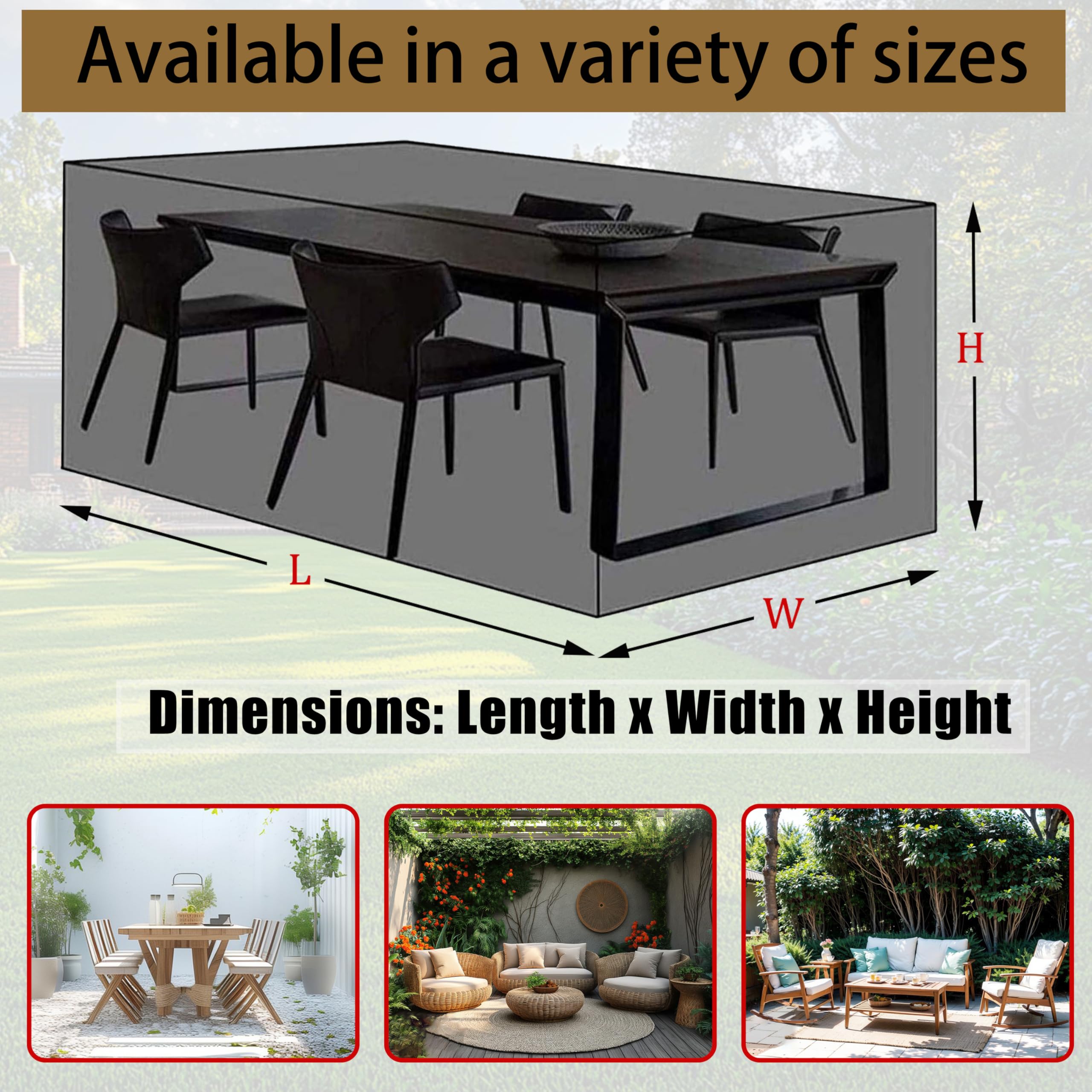 Housse Table De Jardin 135x90x75 HNKDKJ Housses De Mobilier D'extérieur 250x120x70cm/LxWxH Housse Table Jardin Rectangulaire Bâche Salon De Jardin Rattan Garden Furniture Cover Imperméable Anti-UV 420d Oxford Bache Table Exterieur Protection Intempéries été Hiver Bâche de Protection Oxford 420D 160x60x75cm Housse Hydrofuge pour Chaise Longue de Jardin... HNKDKJ Housse Table de Jardin 400x300x85cm/LxWxH Bâche Protection Housse Table de Jardin très bien Même dans des conditions environnementales difficiles, vos meubles de patio peuvent être sûrs, propres et secs Housse Salon De Jardin Exterieur,420D Oxford Tissu Anti-UV Imperméable RéSistance Au Vent. Housse Salon De Jardin Exterieur,420D Oxford Tiss... 15 €. Ajouter... 【Dimensions et personnalisation】Les dimensions sont longueur x largeur x hauteur, Housse Salon de Jardin disponible en différentes tailles, si vous avez des exigences particulières en matière de taille de produit, veuillez nous contacter par e-mail, nous pouvons personnaliser les produits pour que vous puissiez répondre à toutes vos exigences de taille 【Housse Salon de Jardin Imperméable】Imperméable Housse pour terrasse et extérieur avec un revêtement en PVC imperméable épaissi et un revêtement anti-UV, un support stratifié imperméable pourrait empêcher l'eau de s'infiltrer à travers la housse. Après des tests répétés, cette housse en matériau imperméable à haute efficacité peut empêcher vos meubles de ne pas pénétrer par la pluie, prolonger la durée de vie de vos meubles 【Housse pour meubles de jardin 】 Housse salon de Jardin est faite de tissu Oxford 420D, Fabriqué en tissu oxford teint en fil sans décoloration avec revêtement en PVC, imperméable,résistant à la poussière et aux UV, Les bords à double couture sont et aux déchirures et, protection complète de vos meubles de patio extérieur, même lors de tempêtes de neige