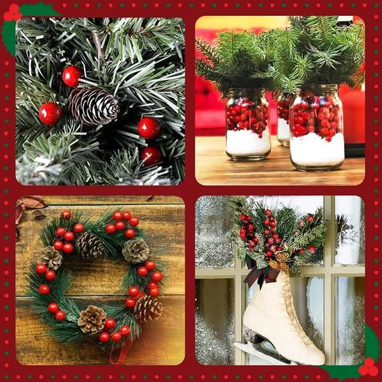 Large utilisation : ces baies de houx sont polyvalentes et peuvent être utilisées pour une large gamme de projets de bricolage..Que vous créiez des boîtes... Tissu de qualité : fabriquées à partir de tissu de qualité, ces baies de houx sont conçues pour durer., ., Ils conservent leur couleur et leur forme vibrantes, garantissant que vos créations conservent leur beauté tout au long de la période des fêtes. Large utilisation : ces baies de houx sont polyvalentes et peuvent être utilisées pour une large gamme de projets de bricolage., ., Que vous créiez des boîtes, fabriquiez des cartes, conceviez des couvre-chefs ou fabriquiez des couronnes et des guirlandes, ces baies sont les éléments décoratifs parfaits. Baies Houx Noël Déco Diy 100 Pièces Baies De Houx Pour L'artisanat, 100 Pièces, 1, 4 Pouces Lot 100 Baies Artisanat Taille facile à installer : mesurant environ 3,6 cm, ces baies de houx ont la taille parfaite pour s'adapter facilement à vos créations., ., Ils ne submergeront pas vos projets et peuvent être intégrés de manière transparente dans vos conceptions. Chiffres Découpés Dans Du Papier Décorés De Feuilles Réalistes De Houx Et De Baies | Vecteur Premium Ensemble de 100 : Avec un ensemble de 100 baies de houx, ce paquet fournit suffisamment d'approvisionnement pour vos besoins d'artisanat., ., Vous pouvez créer des décorations plus complètes et disposer de baies supplémentaires comme options de sauvegarde pour de futurs projets. Baies de houx artificielles avec feuilles vertes pour couronne de Noël, arrangement de gâteaux, décorations de mariage, artisanat, décorations de fête, or/rouge