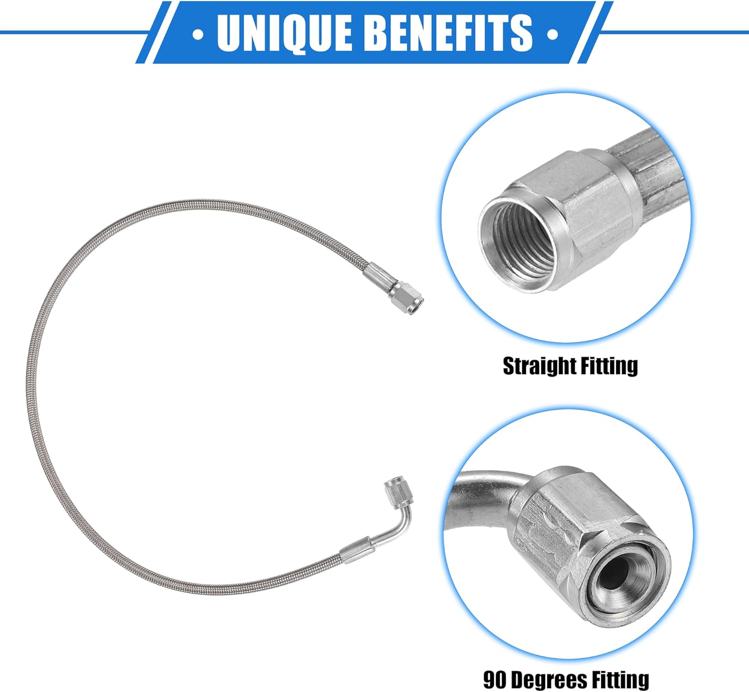 AN3 – Línea De Alimentación De Aceite Turbo De Acero Trenzado De 90 Grados A Extremo De Manguera Recta Turbocompresor Remoto De 9 Pulgadas Linea Ce tuyau fonctionne bien pour la plupart des voitures, motos et moteurs marins. Tuyau Pour Turbo Unique Bargains Ligne D'Alimentation D'Huile Turbo AN3 90 Degrés à Droite Tuyau 40 Pieds Télécommande Turbocompresseur Universel Pour Voiture Raccord Huile Turbo Réutilisable Conception à débit fluide, réutilisable. Trouvez turbo huile lignes raccords d'une excellente qualité, conçu pour une performance et une longévité optimales. Grâce à des composants développés avec... AN3 Ligne d'alimentation en acier tressé turbo à 90 degrés à l'extrémité droite du tuyau, turbo à distance de 61 cm, ligne de retour d'huile universelle pour... Avantages uniques - la lignee d'alimentation d'huile de turbocompresseur 3AN peut fournir de manière transparente de l'huile lubrifiante vers et depuis le turbocompresseur du moteur, empêchant efficacement la rupture du joint d'huile causée par une pression d'huile excessive. Caractéristiques spéciales:Couleur du produit: ton argentMatériau du produit: acier inoxydable, PTFETaille de l'extrémité du tuyau: AN3Extrémité du tuyau: 90 degrés, droitDiamètre de l'extrémité du tuyau à 90 degrés: 12 mm / 0,47 Diamètre de l'extrémité du tuyau droit: 12 mm / 0,47 Longueur totale: 81,2 cm / 32 Longueur de la lignee: 79 cm / 31., 10Installation facile:Universel s'adapte à la plupart des voitures, camions, SUV, motos, marines, etc. Contenu du paquet - Le paquet comprend 1 pcs Ligne d'alimentation en huile de turbo de voiture Ce tuyau est conçu pour gérer le carburant, l'huile, les freins ou le liquide de refroidissements, il est durable, flexible et étanche. Compatible universellement - la lignee d'alimentation en huile AN3 Tur-bo convient à la plupart des voitures, camions, VUS, motos, bateaux, etc. Fabriqué avec une tresse en acier inoxydable de qualité et un noyau interne en PTFE, ce produit offre une protection solide, robuste et durable.